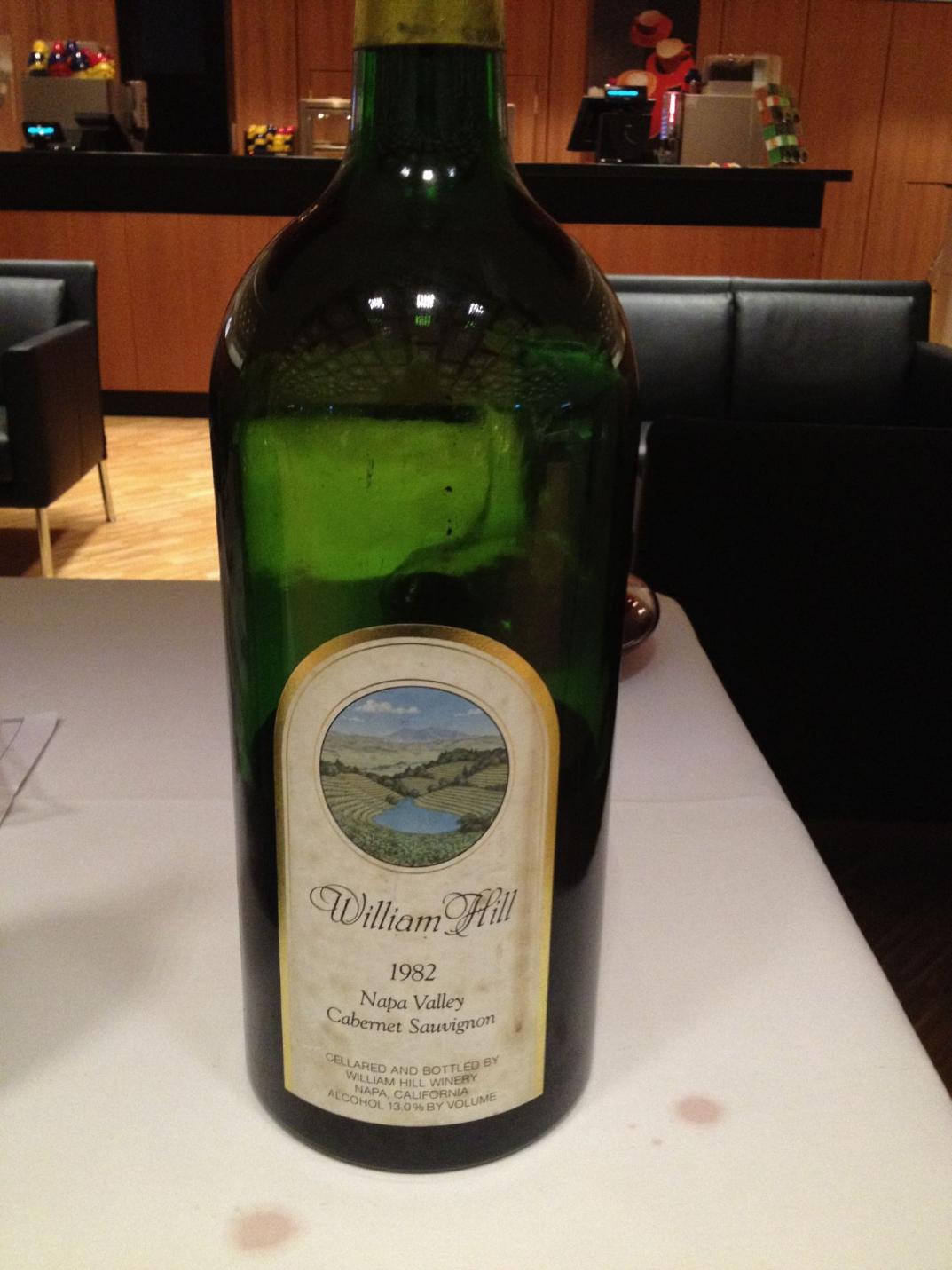 Nach diesem ersten Flight habe ich endlich begriffen, was man unter dem Begriff Arbeitsprobe versteht, denn mit Freude hatte das nichts zu tun. Da habe ich die Weine dann lieber nicht komplett ausgetrunken, obwohl bei 20 Gläsern pro Flasche ohnehin nicht viel im Glas ist. Stattdessen habe ich mir ein großes Glas des Tischweines gegönnt. Der kam, wie der großartige Beaulieu vom Mittag, aus Kalifornien, wo 1982 nicht als Riesenjahr galt. Aber das hier, dieser 1982 William Hill Cabernet Sauvignon, war nicht nur eine Riesenflasche(Jeroboam), sondern auch ein großartiger Wein. Wunderbare, reife, pflaumige Frucht, pfeffrige Würze, Minze, die jodig-ätherischen Noten eines La Mission, gute Säure, auch am Gaumen reif, aber jetzt einfach ein spannender Hochgenuss 92/100. Ja, ich bekenne, den habe ich nicht nur genippt.