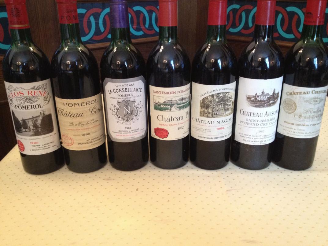 Abschreiben wollte ich zuerst den 1982 La Fleur-de-Gay mit etwas diffuser, überreifer Süße, aber er entwickelte sich enorm im Glas, dürfte aber seinen Höhepunkt inzwischen überschritten haben, immerhin ein sehr leckerer Abschiedsschluck 90/100. Deutlich langlebiger dürfte da 1982 Petit Village sein, der lange Zeit zur Reife brauchte, da aber jetzt endlich angekommen ist. Immer noch dicht und kräftig, Leder, Unterholz, Trüffel, kräuterige Würze, enorme Länge am Gaumen und noch Potential für lange Jahre 93/100. Lange habe ich bei 1982 Lafleur, dieser ultrararen und ultrateuren Ikone gerätselt. Hatte der TCA? Oder war der noch zu jung? Ein enorm vielschichtiger, komplexer, strammer Brocken der enorm viel Zeit und Luft brauchte, mehr als mein kleiner Deguschluck zuließ 96/100. Zuletzt hatte ich diese Ikone im Frühjahr auf der großen Lafleurprobe am Attersee im Glas und notierte : Dicht, kräftig, lakritzig, teerig und maskulin der wie ein großer Pauillac wirkend, mit unglaublicher Länge, gegen den eine Comtesse im Vergleich als Pomerol durchginge 98/100. Aber selbst in dieser Form hätte der Lafleur keine Chance gegen den einmaligen 1982 Trotanoy gehabt, einer der Stars der Probe und einer meiner Lieblingsweine. Das ist eine sehr langlebige, perfekte Mischung aus Petrus und Lafleur. Von Petrus hat er das vollmundige, die dekadent süße, samtige Opulenz, die an den genialen 71er erinnert. Von Lafleur hat er die maskuline Art, die kräuterige Strenge und die Struktur. Gut, das er von beiden nicht den Preis hat 99/100. Kann ich zum Kauf nicht empfehlen. Alles, was der Markt hergibt brauche ich selbst. Enorm überrascht hat mich 1982 Vieux Certan, den ich bisher immer nur enttäuschend im Glas hatte. Ist das auch einer dieser langlebigen Spätstarter? Was für ein noch junges, kerniges, dichtes Geschoß mit enorm druckvoller Aromatik 95/100.