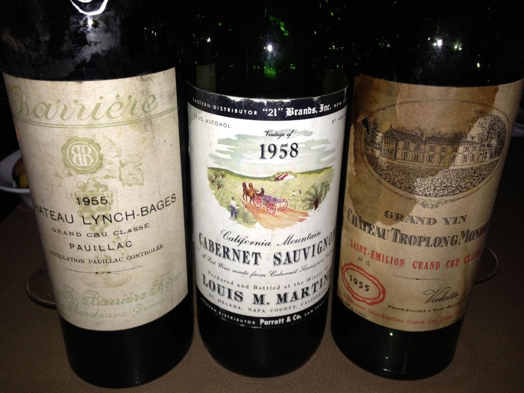 Noch so präsent war 1955 Lynch Bages in einer Barrière-Abfüllung, ein immer noch so junger, feiner Traum in Minze mit wunderschöner, süßer Frucht und guter Säurestruktur, die noch längeres Leben garantiert 96/100. Legendär, ultrarar und ultrateuer ist der Jahrgang 1958 in Kalifornien. Dieser 1958 Louis Martini California Mountain Cabernet Sauvignon hier war erst der zweite Wein, den ich aus diesem Jahr ins Glas bekam. Wunderschön die generöse Nase, sehr reif zwar, aber auch süß, portig und mit viel Rumtopf und malziger Süße, der Gaumen kam nicht ganz mit, da war inzwischen viel flüchtige Säure 92/100. Blind war ich beim dritten Wein bei Cheval Blanc. Dieser 1955 Troplong Mondot in einer Händlerabfüllung war ein absolut stimmiger, sehr harmonischer, eleganter Wein ohne Alter, der sich einfach saugut trank 96/100.