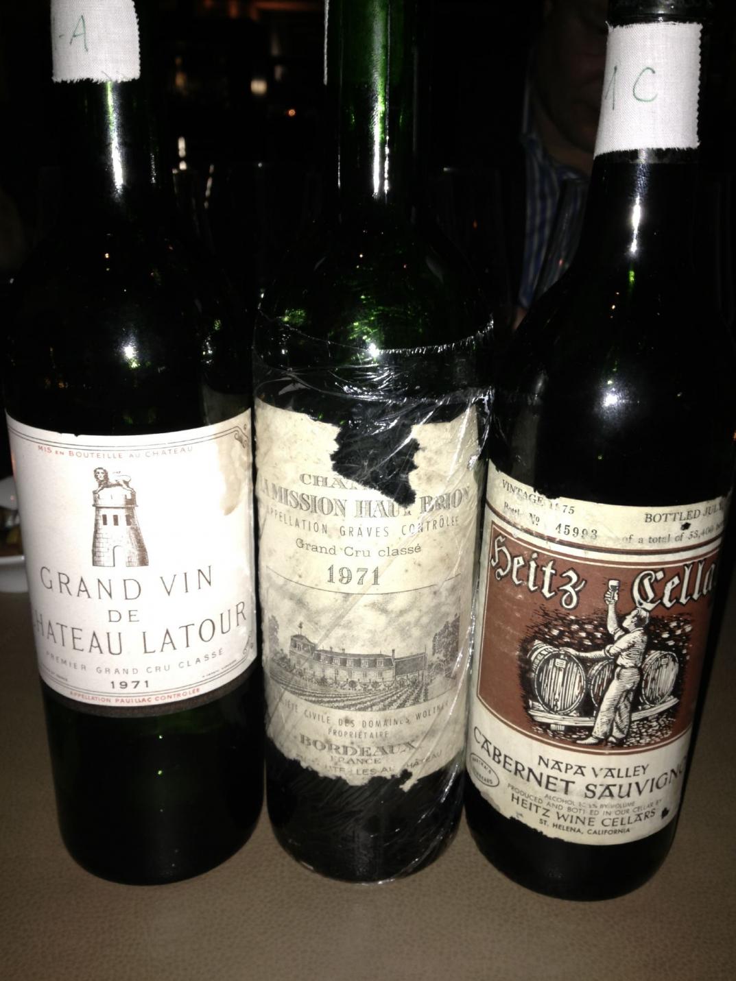 Und schon waren wir mit einem großartigen Flight im Rotweinhimmel. Achterbahn fuhr mit uns zu Anfang der 1971 Latour. In der Nase erst leicht medizinal, jodig, wird immer laktischer, dann kam eine seltsame Cassis-Klebstoffmischung, die zum Schluss einer leichten Überreife Platz machte. Am Gaumen wirkte der Latour zu Anfang sehr reif, leicht gezehrt und austrocknend, baute dann aber im Glas enorm aus und wurde immer schöner - 93/100. Ein Traum der zeitlos schöne, sehr elegante und feine 1971 La Mission Haut Brion, rauchig, ätherisch, jodig, Cigarbox, Teer, Leder, Tabak und großartige Länge 95/100. Ein unbändiges, faszinierendes Tier von Wein war der 1975 Heitz Martha s Vineyard, dichte, undurchdringliche Mörderfarbe, braucht enorm viel Zeit und Luft zur Entfaltung. Aber dann geht es irgendwann los mit explosiver Aromatik, mit viel Minze und Eukalyptus, mit Kraft und Länge 96/100. Ein großer Wein, bei dem man das Gefühl hat, dass er längst noch nicht alles zeigt. Gibt für die nächsten Jahrzehnte einen perfekten Sparringspartner für den 75er La Mission ab.