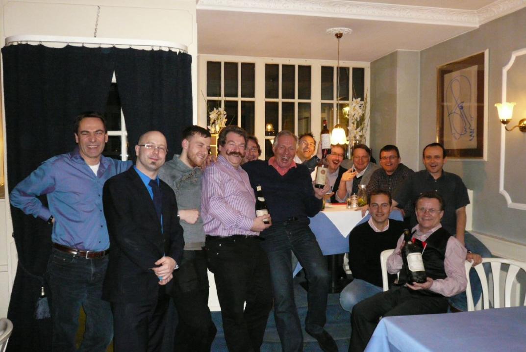 Spontan wurde die Idee im letzten Jahr geboren. Unter dem Motto "Braui meets Schorn" sollte für und mit einigen meiner Schweizer Weinfreunde in Düsseldorf in meinem Stammlokal Schorn eine Probe stattfinden. Im Januar 2008 war es dann soweit. Acht Schweizer Kampftrinker rückten, angeführt von Braui Wirt Werner Tobler, an. Verstärkt wurden sie von einem süddeutschen Braui-Fan und von Jörg Müller aus Sylt. Franz Josef Schorn legte sich mächtig ins Zeug und verwöhnte uns mit einem schönen Menü. Oliver Speh führte souverän wie immer den Kampf gegen widerspenstige Korken und brachte alle Weine perfekt temperiert auf den Tisch.