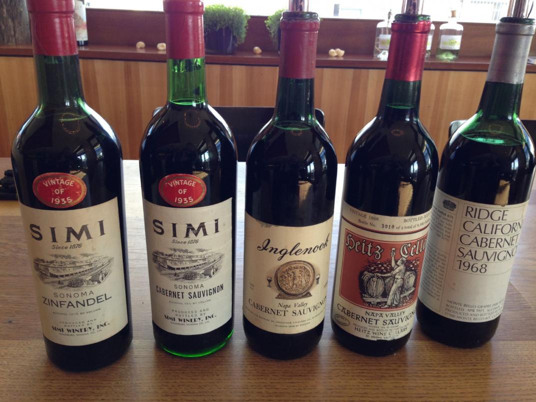 Und dann nahmen wir an der langen Tafel Platz und starteten mit einem ganz speziellen Highlight, zwei damals von Simi nur zwei Jahre nach dem Ende der Prohibition erzeugte Weine. Den 1935 Simi Winery Cabernet Sauvignon Reserve hatte ich seit 1997 schon viermal im Glas, eine letzte Flasche schlummert noch in meinem Keller. Diese hier kam mit den vorherigen leider nicht mit. Ein in Würde gereifter Weingreis, in der Nase etwas staubig-trockene Eleganz, Kaffee, Fruchtreste, deutliche, tragende Säure, hat schon deutlich bessere Tage gesehen 89/100. Aber selbst auf diesem, bescheideneren Niveau würde sich heute aus Bordeaux nichts auch nur annähernd vergleichbar gut trinkbares in 1935 finden lassen. Und dann dieser verrückte 1935 Simi Winery Zinfandel, heute zum ersten Mal in meinem Glas. Reife Farbe mit deutlichen Orangetönen, wilde, animalisch-exotische Aromatik in der Nase und am Gaumen, Lakritz, Kräuter, Orangenzesten, Veilchen, Opas alter Herrensattel, ändert sich laufend und zeigt neue Facetten, noch so vital und lebendig, natürlich getragen von der kräftigen Säure 94/100.