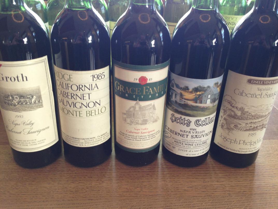Enttäuschend der 1985 Groth Cabernet Sauvignon Reserve, der mal zu den großen, legendären Kaliforniern gehörte, dessen beste Zeit aber zumindest aus dieser Flasche vorbei war. Wirkte etwas unausgewogen mit spitzer Säure, glättete sich etwas, wurde zugänglicher, aber groß ist anders 92/100. Dazu traf dieser Wein natürlich wie alle dieser Gruppe auf einen hoch verwöhnten Gaumen. Kult war vor längerer Zeit auch 1985 Grace Family Vineyard, aber auch das ist eine Weile her, wirkte weich und langweilig, auf dem Wege abwärts mit ersten Magginoten 88/100. Und dann hatten wir natürlich beim 1985 Heitz Martha s Vineyard das gleiche Problem wie vorher beim 84er. Ich habe ihn eine Weile im Glas gelassen und dabei immer wieder intensiv belüftet und zwischen zwei Gabriel-Gläsern hin und her geschüttet. So landete ich von 88 bei 90, dann bei 93 und zum Schluss bei 95/100. Ist aber eine sehr mühsame Art des Weintrinkens. Der ausgewogenste Wein dieses Flights war der trotz saftiger Frucht reif wirkende, würzige 1985 Ridge Monte Bello 94/100. Etwas mehr hätte ich auch wie im übrigen bei allen Weinen dieses letzten Flights vom 1985 Phelps Eisele Vineyard. Ein feiner, runder, reifer, rotbeeriger Cabernet mit schöner Süße, der auch ein 85er Bordeaux hätte sein können 93/100.