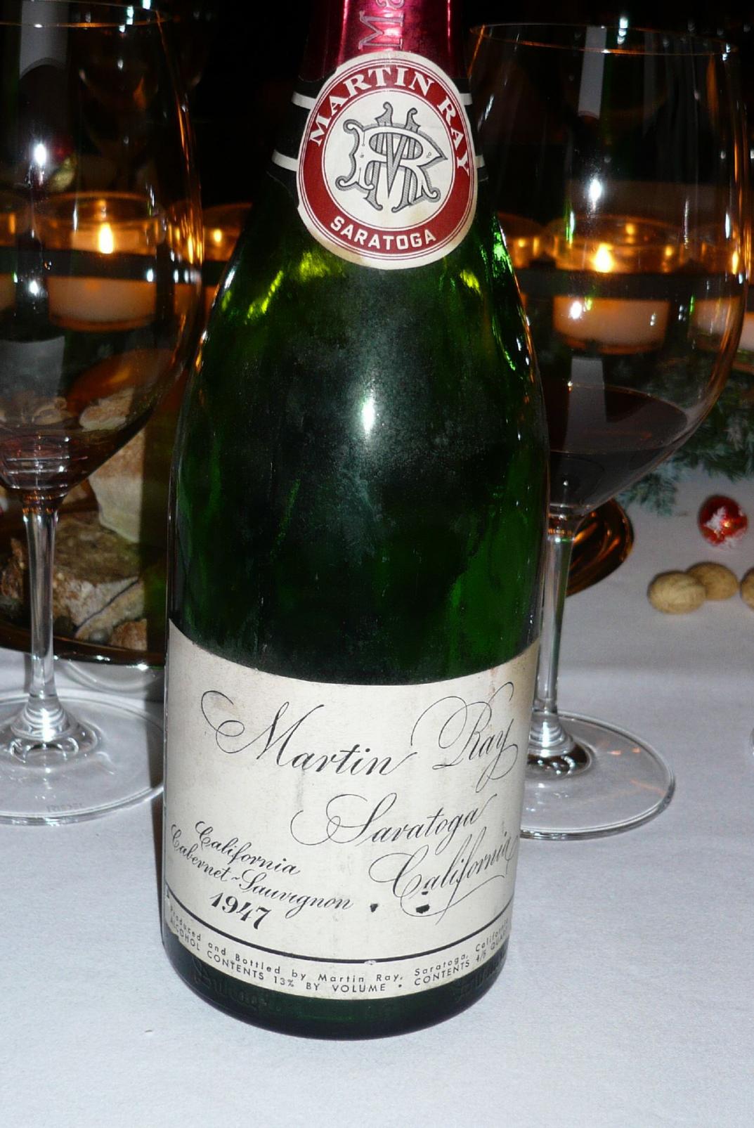 Zwei Burgunderflaschen standen im nächsten Flight, aber nur in einer war ein Burgunder. In der anderen war ein Cabernet Sauvignon und eine weitere Legende, die ich heute zum ersten Mal trinken durfte. Martin Ray ist einer dieser Visionäre, die nach der Prohibition wieder durchstarteten und die Grundlagen für den modernen, kalifornischen Weinbau legten. Nach einigen Jahren bei Pol Masson gründete Martin Ray Anfang der 40er in den Santa Cruz Mountains sein eigenes Weingut. Wahrscheinlich hat er damals aus Ersparnisgründen er produzierte aus eigenen und zugekauften Trauben auch Chardonnay und Pinot Noir - nur eine Sorte Flaschen gekauft. Und so landete dieser 1947 Martin Ray Cabernet Sauvignon halt in der Burgunderflasche. In der reifen Nase Liebstöckel, aber auch noch gute Frucht, am Gaumen insgesamt jünger und noch sehr kräftig wirkend, baute nicht ab, sondern aus und wurde im Glas immer besser 91/100. Und in diesen Punkten ist der Erlebniswert noch nicht erhalten! Die Leistungen der damaligen Kalifornien-Pioniere kann man gar nicht hoch genug einschätzen. Die hatten wenig Erfahrung, nur beschränkte Mittel und kaum Kunden. Wein war seinerzeit in Amerika ganz im Gegensatz zu heute kein Thema. Aber dafür hatten diese Winzer etwas Anderes, Enthusiasmus, Weinbegeisterung, den klassischen amerikanischen Pioniergeist, und das kann man schmecken.