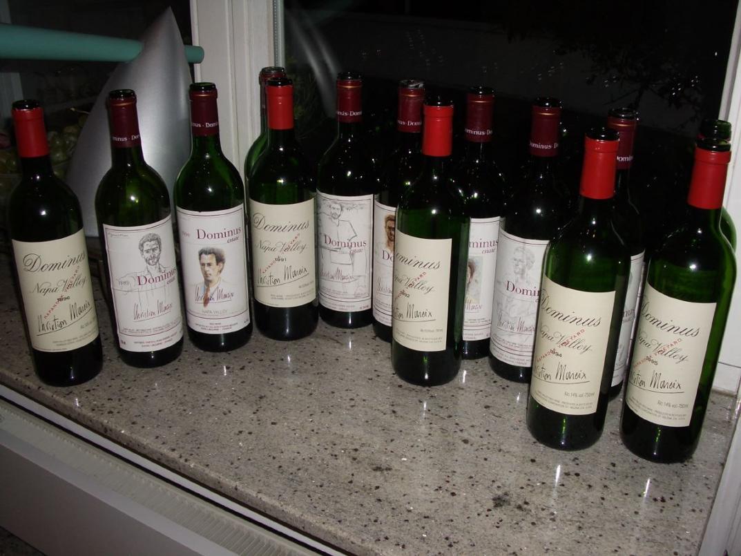 Ich habe alle Dominus Weine schon mehrfach getrunken, je nach Stadium des Weines begeistert, oft aber auch ratlos. Eine sehr interessante Vertikalprobe im April 2005 stellte alle bisher erzeugten Dominus Weine von 1983 bis 1997 gegenüber und gab die Möglichkeit, diese Weine in einer Momentaufnahme zu vergleichen. Alle Flaschen waren in tadellosem Zustand.