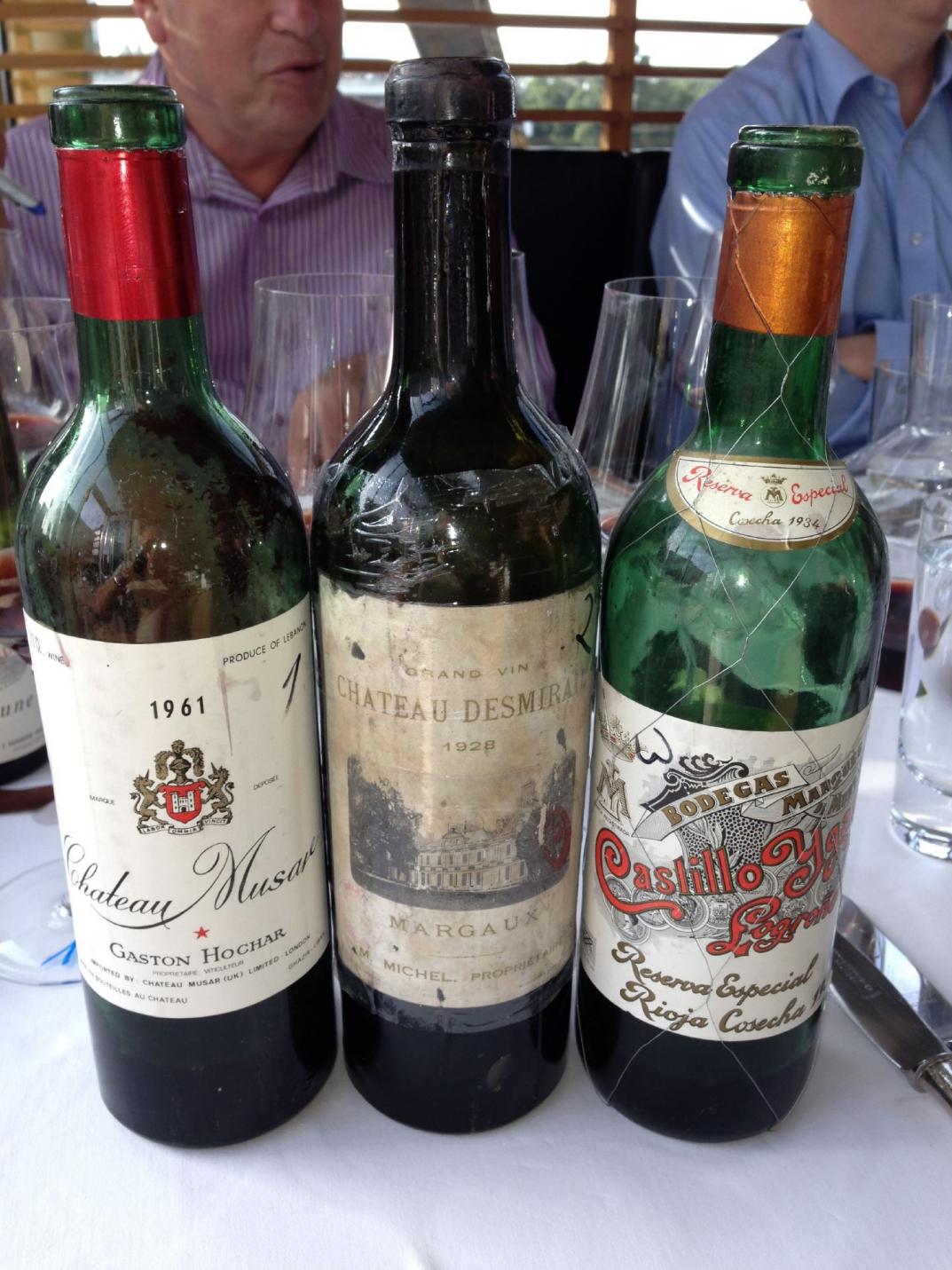 Und dann war Träumen angesagt. Der nach langen Jahren endlich reife 1961 Musar aus dem Libanon hatte eine dermaßen unglaubliche Nase mit allen Gewürzen des Orients, mit feiner Toffeesüße, die sich am seidigen, im besten Sinne burgundischen Gaumen in betörender, hedonistischer Form fortsetzte und in einem ewig langen Abgang endete WT98. 1994, als ich den 61er Musar auf einer Drawertprobe zum ersten Mal im Glas hatte, hielt ich ihn für einen riesengroßen Pomerol. Eigentlich müsste man den mal gegen 1961 Petrus stellen. Den habe ich leider nicht, aber ich könnte meine letzte Flasche des vielleicht noch rareren Musar aufbieten. Leider nicht in der Form, wie ich ihn aus der französischen Mähler-Version kenne, war der 1928 Desmirail aus einer wohl belgischen Händlerabfüllung. Der hatte einen deutlichen, animalischen Stinker in der Nase, war rustikal und kräftig, ließ aber jede Eleganz vermissen WT90. Immer noch kraftvoll, auch in der Farbe, mit guter Struktur und Säure der 1934 Marques de Murrieta Castillo YGAY, sehr würzig mit karamelliger Süße, Leder und Tabak, wirkt deutlich jünger WT96.