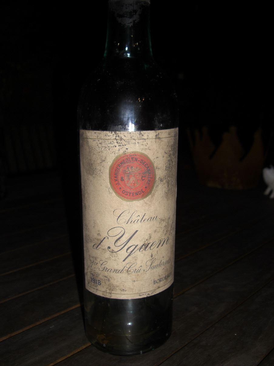 Langsam kroch die abendliche Feuchtigkeit hoch. Zeit für einen letzten Schluck auf der Terrasse und einen anschließenden Ortswechsel. Mit brillianter Mahagonifarbe floss ein großer, edelsüßer Wein in unsere Gläser. Mein Freund Philippe aus Frankreich war da ganz schnell sicher: das ist ein großer, alter Yquem. Er lag goldrichtig. 1918 d Yquem stand da vor uns in einer Vandermeulen-Abfüllung. Wunderbare Nase mit Bienenwachs und Honigtönen, am Gaumen die klassische Orangen-Bitternote, Crême Brulée, dabei unglaublich balanciert, überhaupt nicht alt oder gar überaltert wirkend, sondern immer noch sehr lebendig, harmonisch und schlank im positiven Sinne, ein zeitloses Monument 97/100.