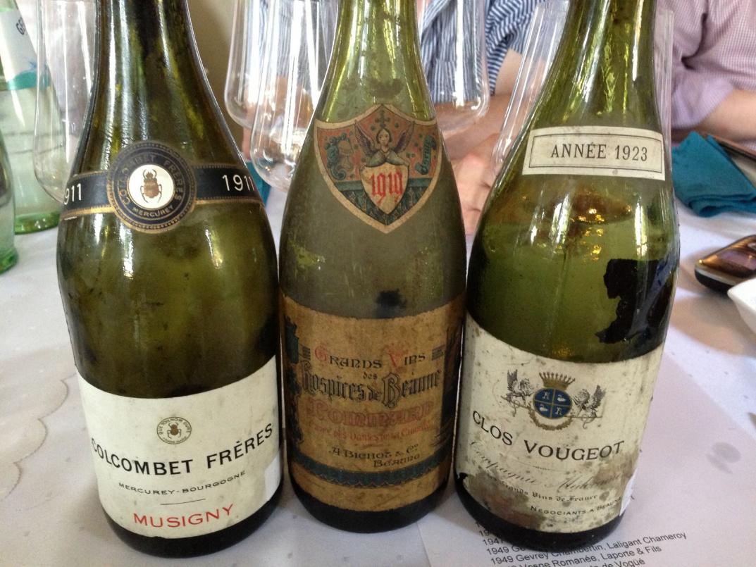 Wunder kann man von einem über hundertjährigen Wein nur in absoluten Ausnahmefällen erwarten. Dieser 1911 Musigny von Colcombet Frères hier verhielt sich eher "altersgerecht" mit Liebstöckel, Kaffeenoten, malziger Süße, war aber trotz deutlich spürbarer Oxidation noch gut trinkbar. WT88 für den reinen Genuss, der Einmaligkeits- und Erlebniswert liegt natürlich deutlich höher. Wie ein großer, perfekt gereifter Ausnahmeburgunder schmecken kann, zeigte eindrucksvoll der 1919 Pommard Cuvée des Dames de la Charité vom Hospice de Beaune, abgefüllt von Bichot. Da war noch eine brilliante Farbe, erstaunliche Frucht, sogar Frische, für die die gute Säure verantwortlich zeigte, statt Gebrechen sehr solide Struktur und erstaunliche Fülle und Länge WT97. Zwar noch ohne Schmerzen trinkbar, aber schon weitgehend oxidiert der 1923 Clos Vougeot der Compagnie Médocaine WT82.