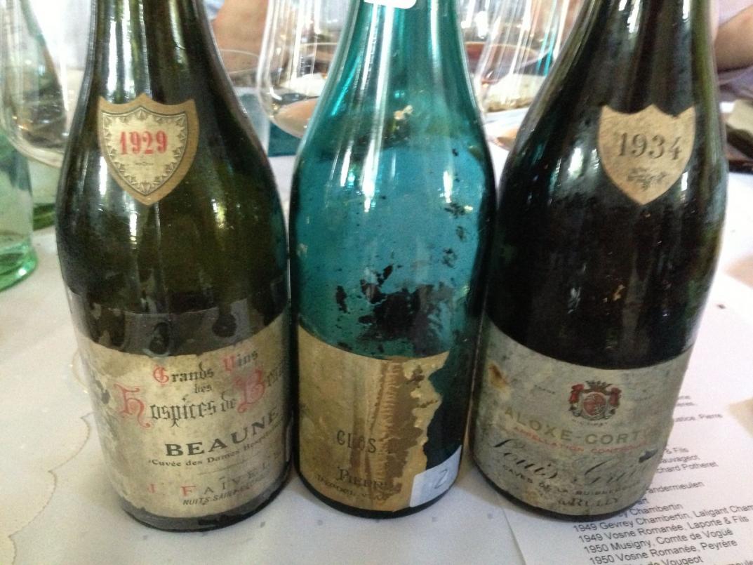 Begeisternd auch der 1929 Beaune Cuvée des Dames Hospitalières vom Hospice de Beaune, abgefüllt von Faiveley, noch so frisch wirkend, so animierend mit geradezu pikanter Frucht, traumhaft finessig und am Gaumen tänzelnd WT96. Deutlich besser kenne ich den 1929 Gevrey Chambertin Clos de la Justice von Pierre Bourée, der aus dieser Flasche hier einfach zuviel flüchtige Säure hatte WT87. Eine sehr positive Überraschung der 1934 Aloxe Corton von Grivot, frisch, fruchtig, fröhlich und vital, voll da mit hohem Genussfaktor 93/100.
