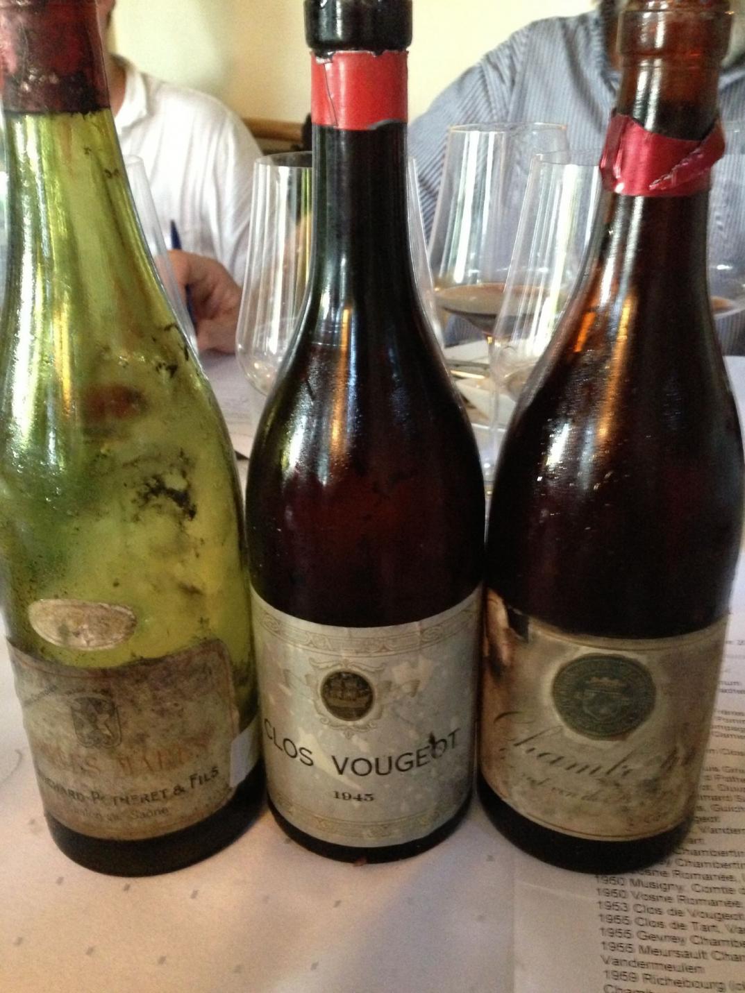 Erstaunlich jung, filigran, pikant und fruchtig wirkte zu Anfang der 1945 Bonnes Mares von Guichard Potheret, der mit der Zeit im Glas enorm ausbaute und dabei reifer, generöser und süßer wurde WT96. Auch der 1945 Clos Vougeot in einer unbekannten Händlerabfüllung (Lafitte?) zeigte sich altersfrei, unendliche Eleganz gepaart mit dichter Struktur und Säure für ein noch langes Leben, das so viele 45er auszeichnet WT95. Schlichtweg atemberaubend dann der legendäre 1947 Chambertin Vandermeulen, einer der größten Weine, die ich je im Glas hatte, aus einer perfekten Flasche und fünf(!) Stunden vorher dekantiert. So jung, so unglaublich druckvoll und komplex, so irre lang, Worte können diesem Wein kaum gerecht werden WT100.