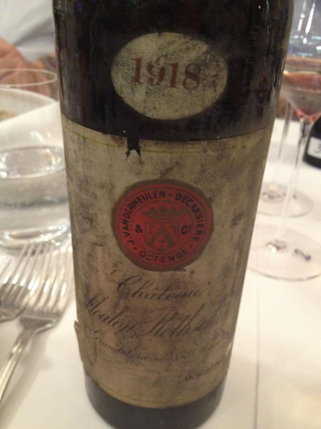 Völlig von den Socken war nicht nur ich beim überragenden 1918 Mouton Rothschild, der sich vor dem legendären 45er des Gutes nicht zu verstecken braucht. Absolut perfekte Traumnase, an der ich stundenlang riechen könnte, einfach verschwenderisch schön mit Minze, Leder, Mineralität, Bleisift und feiner Süße, der Gaumen deutlich eleganter, filigraner, seidig mit unendlicher Länge, einfach Perfektion im Glas und ein ganz großes Weinerlebnis 100/100. Da kam auf sehr hohem Niveau der 1926 Lafite Rothschild nicht mit, den ich aus der gleichen Charge vor vier Jahren ebenfalls schon mal absolut perfekt auf 100/100 Niveau im Glas hatte. Hier zeigte er sich jetzt als typischer 26er, ein Wein mit sehr dichter Farbe und gewaltiger Struktur und Kraft. Die deutlichen Tannine zeigen, das bei diesem durchaus sehr eleganten Wein noch etliches passieren kann. Bei einem 86 Jahre alten Wein von Potential und Zukunft zu sprechen mag sich seltsam anhören, aber hier ist es angebracht 95+(!)/100. Voll auf dem Punkt der 1934 Lagrange, ein kompletter, großer Wein mit Fülle, Kraft, Dichte, Süße und Länge, bei dem von der Nase über den Gaumen bis zum Abgang einfach alles stimmt 96/100.