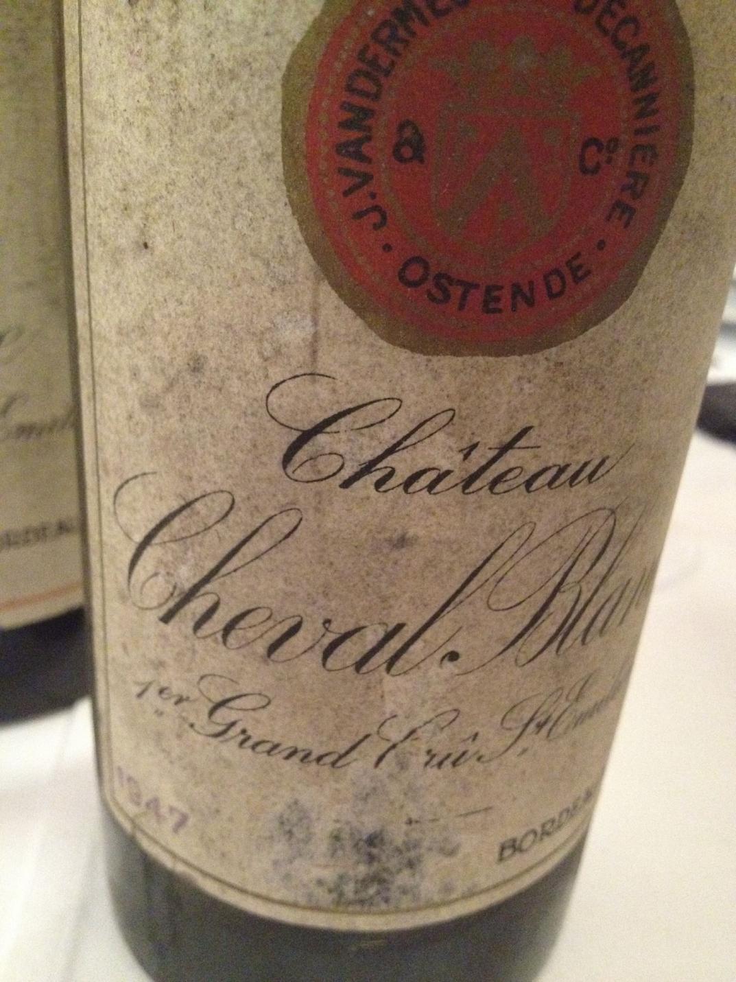 Ein perfekt gereifter, hoch eleganter, unsterblicher Traum der 1947 Margaux, einfach Margaux in seiner schönsten Form 100/100. Diese Flasche stammte aus einem perfekte, belgischen Keller, aus dem ich damals eine große Anzahl Vandermeulen Weine in excellentem Zustand kaufen konnte und lag jetzt gut 20 Jahre in meinem Keller. An den großen 2000er des Gutes fühlte ich mich bei 1947 Pavie erinnert, auch das hier ein Mörderteil mit Mörderfarbe, gewaltige, druckvolle Aromatik, Kraft ohne Ende, After Eight, großartige Länge 99/100. Die Klasse der Pavies ab 1998 ist kein Zufall und keine Hexerei. Gerard Perse, der neue Besitze, führt das Gut nur dahin, wo es früher einmal war. Und dann die Legende 1947 Cheval Blanc, ein Wein, der als einer der größten des letzten Jahrhunderts zählt. Wenn er denn in gutem Zustand ist, denn aus vielen Flaschen, die nicht optimal gelagert wurden und/oder schon zu viele Besitzer hatten, ist dieser Wein schon müde. Nicht aus dieser Flasche! Das war 47 Cheval Blanc in Bestform, ein Wein zum Niederknien. Bei aller, einfach geiler Üppigkeit mit leicht portiger Süße und viel dunklem Toffee und Bitterschokolade war da auch eine tolle Struktur, die Cheval-typische Eleganz, und das alles altersfrei. Die Punkteskala endet ja bei 100/100. Da hätte ich sonst noch ein paar Begeisterungspunkte drauf gepackt. Wir bewegten uns jetzt auf einem derart hohen Niveau, dass nicht nur mir langsam die Superlative ausgingen. Aber es sollte so weitergehen.