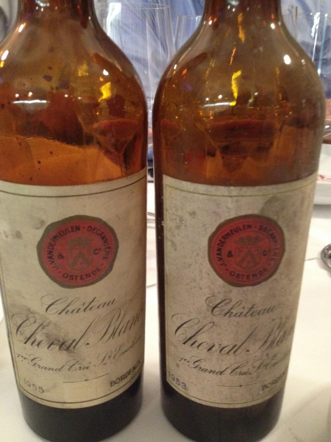 Das Gespür der Vandermeulen-Brüder für große Weine zeigte sich auch daran, dass sie praktisch in allen großen Jahren Cheval Blanc einkauften. So konnte ich jetzt in dieser Probe nach den großartigen 20, 28 und 47 noch zwei Weitere bringen. 1953 Cheval Blanc war sehr fein, elegant und finessig mit wunderbarer, Cheval-typischer Nase und feinem seidigen Schmelz am Gaumen 97/100. Und mit dem konzentrierten, dichten, im Abgang unendlich langen 1955 Cheval Blanc kam 100/100 Legende #10 ins Glas. Das war einfach der helle Wahnsinn, diese Qualität gekoppelt mit unglaublichem Flaschenglück.