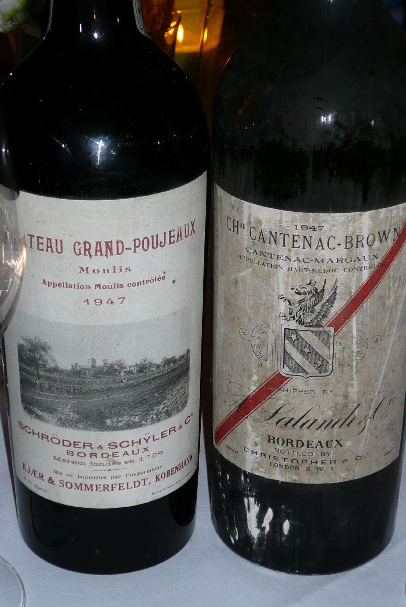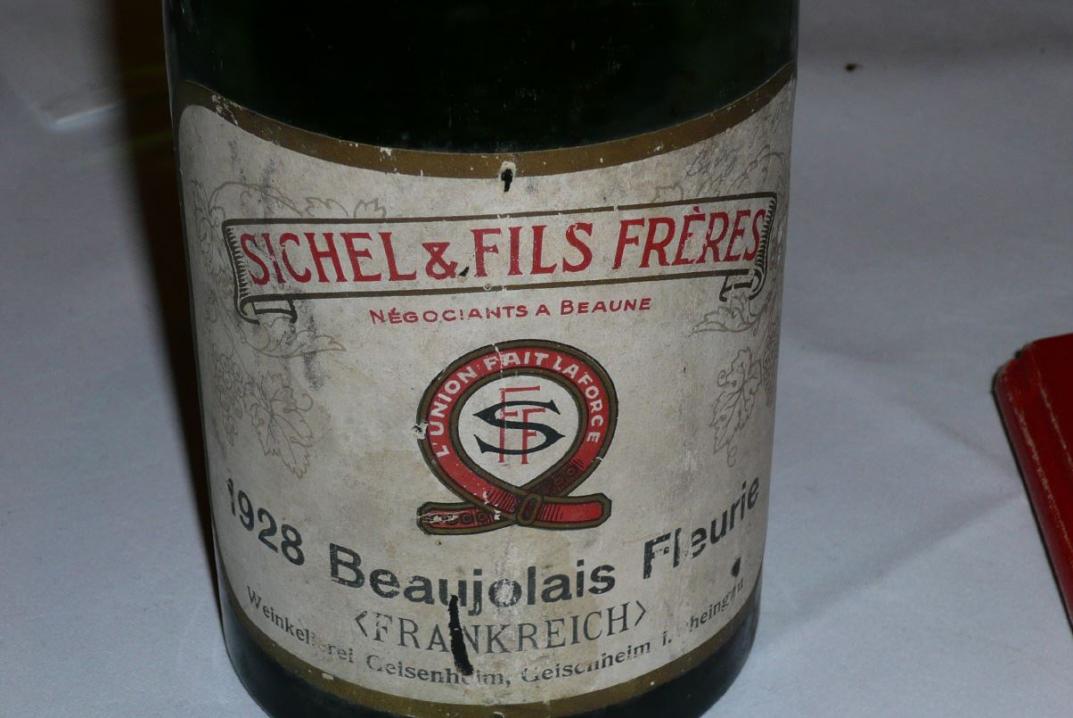 Noch zwei schöne Überraschungen dann im letzten Flight. 1947 Cantenac Brown in einer englischen Abfüllung von Christopher&Co hatte eine reife, helle Farbe, immer noch eine delikate, rotbeerige Frucht, war sehr schmeichlerisch und elegant, eben so, wie man sich einen reifen Margaux vorstellt 92/100. Im Nachbarglas dann ein weiteres, faszinierendes Zeitdokument, ein 1928 Fleurie, von Sichel&Fils Frères abgefüllt für die Weinkellerei Geisenheim. Auch der wurde getragen von einer kräftigen Säure, hatte aber noch soviel Frucht. Überraschend schön alleine schon die extrem fruchtige Nase, bei der man meinte, in eine große Tüte Fruchtbonbons hineinzuriechen 92/100. Mit heutiger Beaujolais-Plörre hat das nichts gemeinsam.