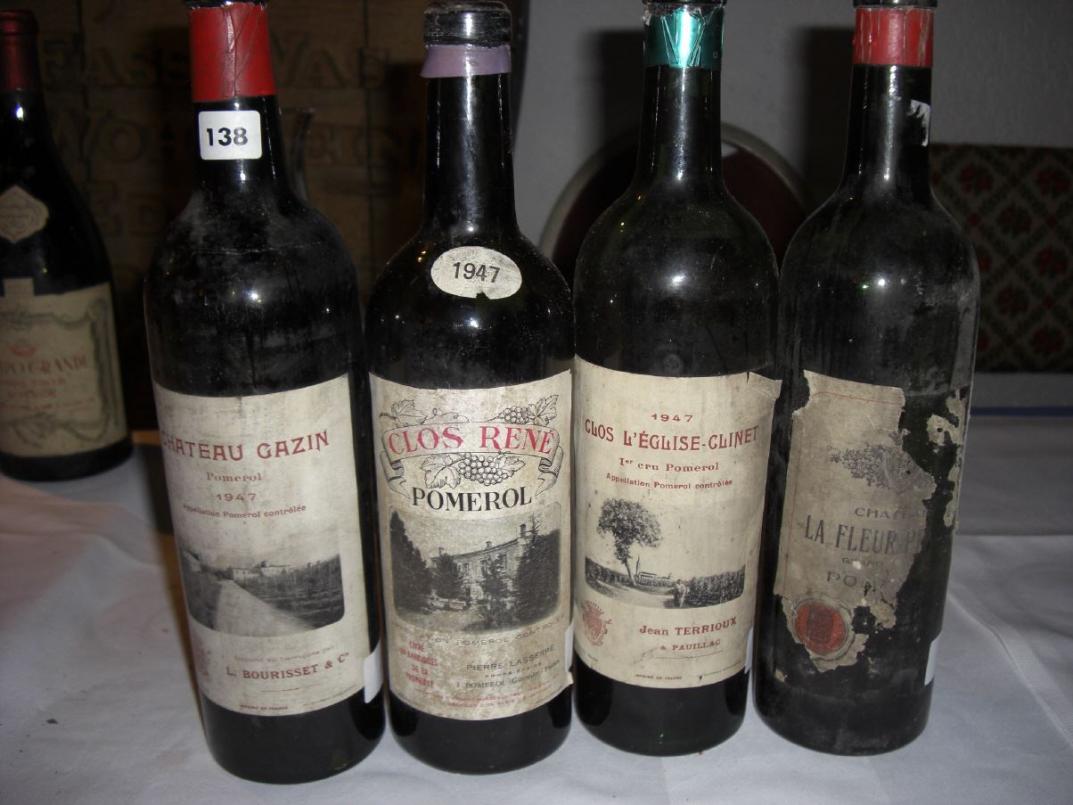 In die Niederungen normaler Pomerols ging es mit dem nächsten Flight. Doch das war nur ein ganz dezenter Abstieg. Mit Pomerols gleich welcher Gattung kann man wohl in 47 überhaupt nicht falsch machen. 1947 Gazin in einer französischen Händlerabfüllung von Bourisset gehört sicher bald getrunken, war aber ein sehr schöner, weicher, gefälliger Wein mit guter Süße und erstaunlicher Kraft 93/100. Noch offener, gefälliger mit wunderbarer Süße 1947 Clos René, ein Wein, der einfach auf hohem Niveau sehr viel Spaß macht, ebenfalls in einer französischen Händlerabfüllung 94/100. Sehr beeindruckend 1947 Clos de l Eglise Cinet, abgefüllt von Jean Terrioux in Pauillac. Ein robuster Kraftbolzen mit Potential für noch viele Jahre, sehr druckvolle Aromatik und die verschwenderische Fülle und Süße eines top gereiften Merlots 96/100. Star des Flights aber war 1947 La Fleur Petrus in einer belgischen Händlerabfüllung. Ganz großer, reifer Merlot aus großem Jahr, sehr komplex, immer noch fordernd und mit perfekter Tanninstruktur. Bitterschokolade, feinster Schmelz, aber auch noch viel Kraft und eine enorme Dichte, sehr lang am Gaumen und dabei harmonisch unausgewogen wirkend. In diesem Jahrgang nicht weit von der Klasse eines Petrus entfernt und das zu einem Bruchteil des Preises - 98/100.