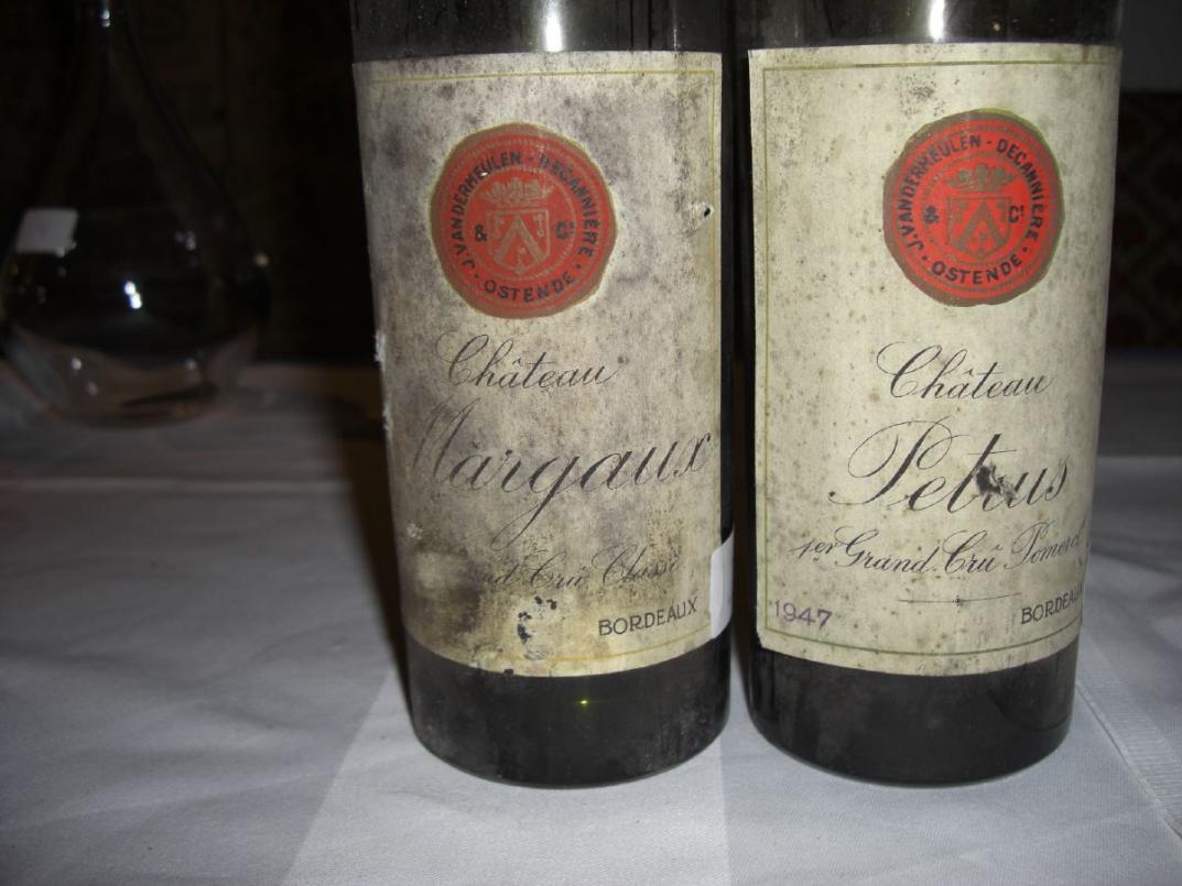 Sehr sorgfältig waren die Vandermeulens wohl auch bei der Auswahl der Korken. Korkige Flaschen bei Vandermeulen sind sehr selten. Um so ärgerlicher, dass ausgerechnet in unserer Probe der Korkteufel zuschlug und dann auch noch bei 1947 Petrus Vandermeulen. Klar habe nicht nur ich den Wein trotzdem getrunken. In der Nase war der Kork deutlich stärker als am Gaumen. Da gibt es dann einen einfachen Trick. Einfach kräftig in das Glas hinein blasen und damit für kurze Zeit den Nasenkork wegpusten. Wer dann schnell trinkt, hat zumindest noch ein Resterlebnis. Hat auch in diesem Fall funktioniert und wenigstens eine deutliche Ahnung davon gegeben, welch ein Riese uns da durch die Lappen ging. Von der Substanz war dieser Wein wieder ein klarer Kandidat für 100/100. Etwas entschädigt wurden wir durch die wieder überragende Qualität des zweiten im Bunde, 1947 Margaux Vandermeulen. Auch das ein außerweltlicher Riese mit Süße, Fülle, Opulenz, aber auch perfekter Struktur und immer noch Tanninen 100/100. Ein Wein, der noch Potential für mindestens ein Jahrzehnt hat.