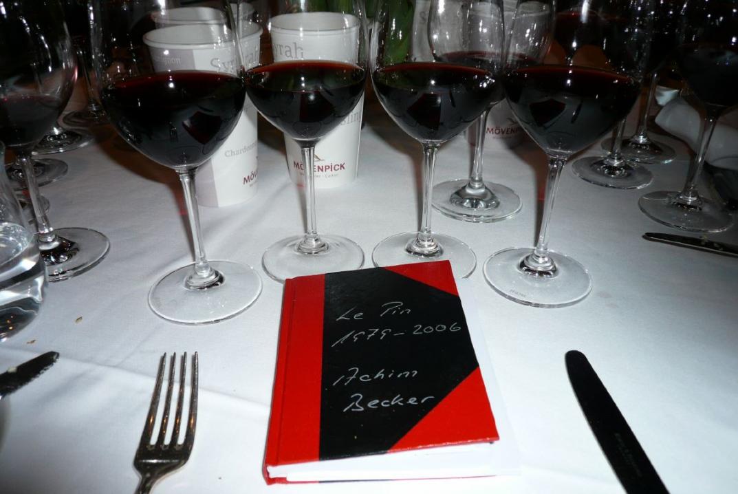 Ein blind ausgeschenktes 94er Quartett aus üppigen Großflaschen begleitete den Hauptgang unseres Menüs. 1994 Cheval Blanc aus der Doppelmagnum war der schwächste der Runde. Den rettete schließlich nur ein immer stärker werdender Korkton vor der sicheren Blamage. Dieser Cheval Blanc ist nun mal ein eckiger, rustikaler Kraftprotz ohne jeden Charme. Wenig Freude bereitete auch der aus der Magnum ausgeschenkte 1994 Gazin. Ein tanninbetonter Wein mit leicht grünen Noten in der eher anstrengend wirkenden Nase, entwickelte sich kaum im Glas und war auch etwas kurz im Abgang 89/100. 1994 Lafleur zeigte sich aus der Doppelmagnum recht offen und zugänglich, wunderbar komplexe, kräuterige, süße, schokoladige Nase, am Gaumen kraftvoll mit spürbaren Tanninen, aber auch hier einfach schokoladig-lecker mit feiner Süße, erinnerte an die großartige Imperial 2007 bei René Gabriels Petrus-Probe auf Muottas Muragl 95/100. Noch eine Ecke drüber 1994 Le Pin aus der Doppelmagnum, der zur Freude von Jacques Thienpont auch die Publikumswertung klar gewann. Da war soviel Süße und Fülle, aber auch noch ungeheure Kraft, dekadent die immer mehr süße Himbeeren zeigende und noch von Röstaromen geprägte Nase, einfach eine gewaltige, berauschende Droge, dieser noch nie so gut getrunkene Wein 96/100. Fünfter im Bunde war der als Tischwein ausgeschenkte 1994 La Conseillante aus der Imperiale. Noch sehr junge, dichte Farbe, in der Nase rotbeerige Frucht, aber auch der verschwitzte Turnschuh, am Gaumen fleischig, kräftig und noch ganz am Anfang, ein Charakterwein mit Ecken und Kanten, der sich wunderbar trank und rasch leer war 91/100.