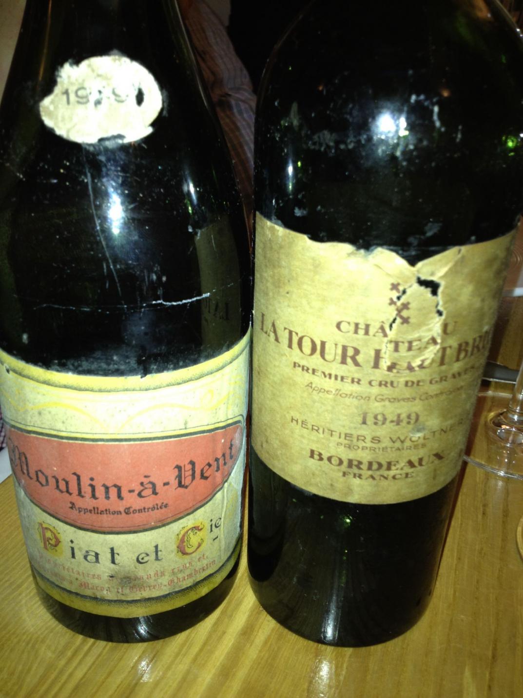 Mit zwei großen 49ern ging es weiter. Die eigentliche Überraschung für mich war dabei der schlichtweg sensationelle 1949 Moulin-à-Vent von Piat. Wenn ich nicht schon mehrfach große und überragende, ältere Lagenweine aus dem Beaujolais im Glas gehabt hätte, wäre ich hier ins Grübeln gekommen. Aber im Gegensatz zu heute gab es damals im Beaujolais wohl noch außer Gamay alte Pinot Noir Rebstöcke, von denen dann noch Trauben für solche Ausnahme-Burgunder geerntet werden konnten. Dieser hier wirkte noch so jung, so kräftig, so fruchtig, so expansiv mit gewaltiger, druckvoller Aromatik, lang am Gaumen mit kräftiger Säure. Da konnte man sich nur vor verbeugen 97/100. Weniger überraschend die außergewöhnliche Qualität des 1949 La Tour Haut Brion in einer belgischen Händlerabfüllung. Auf diesem Gut, dass immer im Schatten von La Mission und Haut Brion stand, wurden damals Weine voll auf Augenhöhe mit den beiden berühmten Brüdern gemacht, die sich allenfalls durch ihre etwas kernigere Art unterschieden und natürlich durch den deutlich niedrigeren Preis. Dieser hier war enorm dicht und kräftig mit vielLakritz, Teer und Cigabox in bester Haut Brion Art, sehr mineralisch, explodierte förmlich am Gaumen mit gewaltiger Länge, dabei noch so jung und bald zeitlos wirkend mit immer noch junger, rotbeeriger Frucht, einfach perfekt 100/100.