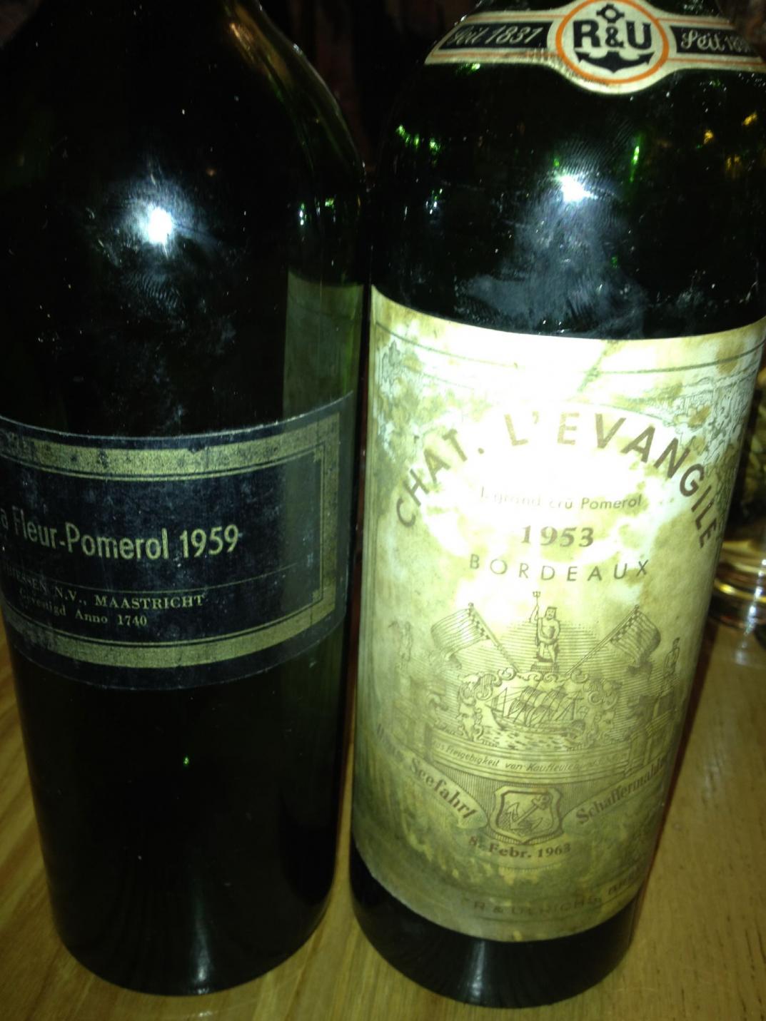 Pomerol in seiner allerschönsten Art zeigte sich in einem 1953 l Evangile in einer deutschen R&U Abfüllung für die Bremer Schaffermahlzeit, zeitlose Eleganz, so fein und finessig, so elegant mit süßem Schmelz, burgundische Pravcht und Fülle 97/100. Mehr linkes als rechtes Ufer im anderen Glas der noch viel zu jung erscheinende, enorm dichte, kräftige 1959 Lafleur in einer holländischen Abfüllung von Thiessen, ein Muskelpaket für etliche Jahrzehnte 95+/100.