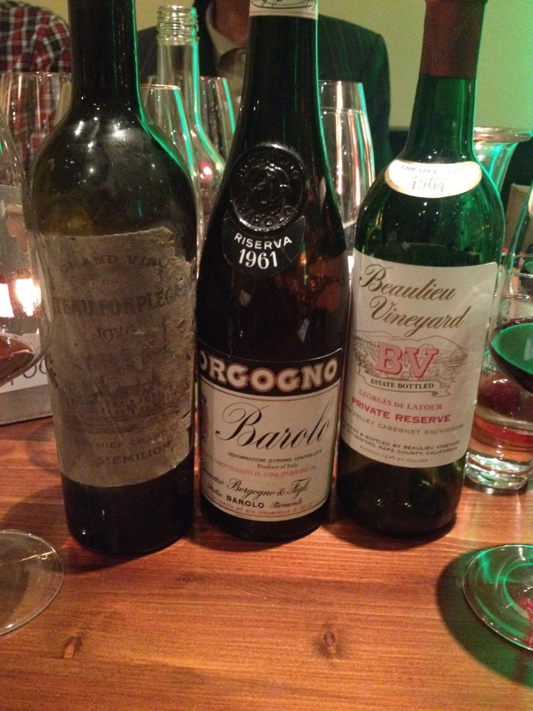 Wir starteten in unseren eigenen WineLive Premierenabend mit einem immer noch erstaunlich vitalen Oldie, einem 1928 Fonplégade Premier Cru aus St. Emilion. Diese 28er Weine mit ihrem einst mächtigen Tanningerüst sind einfach nicht kaputtzukriegen. Dieser hier war natürlich reif, auch in der Farbe, aber immer noch mit pikanter Restfrucht, einer deutlichen Säure, die einen Hauch frische verlieh, und einer generösen Süße, hielt sich sehr gut im Glas und baute nicht ab 90/100.