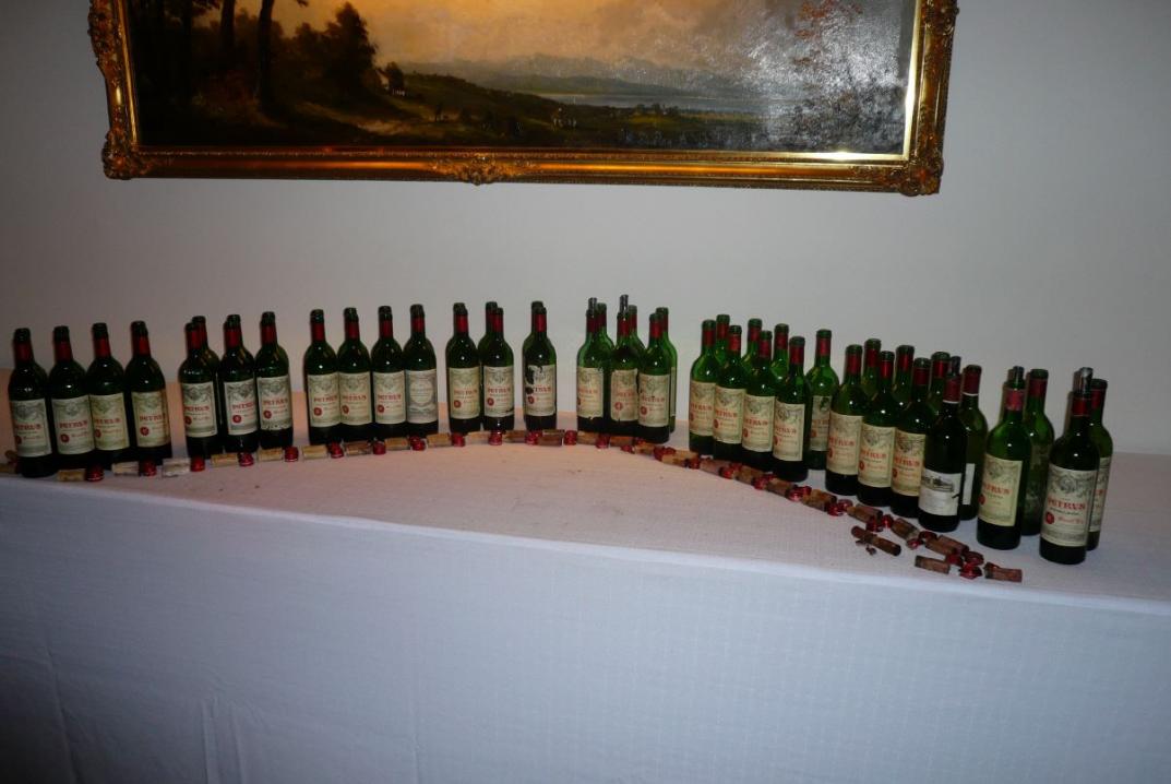 € 3.950 kostet derzeit eine Flasche 2005 Petrus auf der Website eines großen Internet-Anbieters. Ein absurder Preis für einen jungen Wein und sicher außerhalb der Reichweite eines Normalsterblichen. Knapp darunter lag der Preis einer Probe mit 26 Jahrgängen dieses Chateaus, wobei die 22 Teilnehmer für diesen Preis nicht nur mit jeweils 2 Flaschen sehr großzügig versorgt wurden, sondern auch noch in den Genuss eines erlesen 9-Gang-Menüs, kommoder Unterkunft und des PS-starken AMG-Shuttles kamen.
