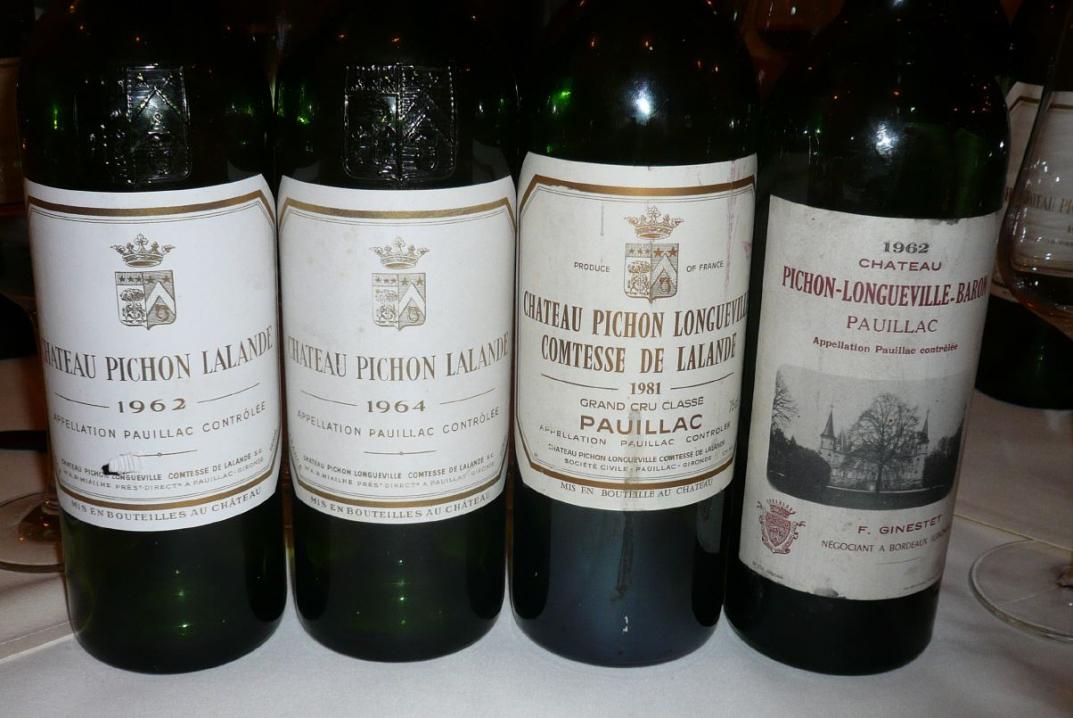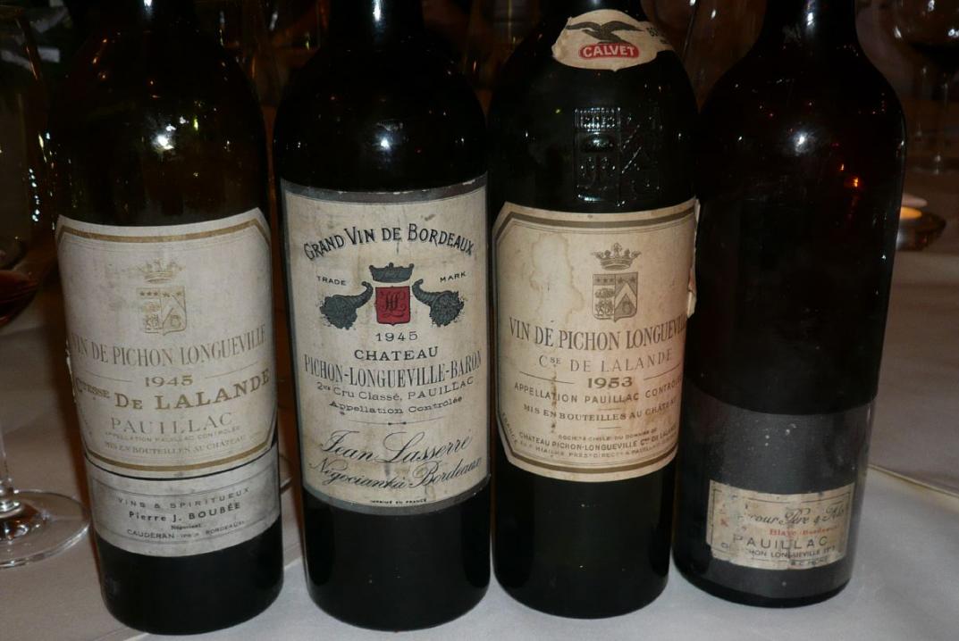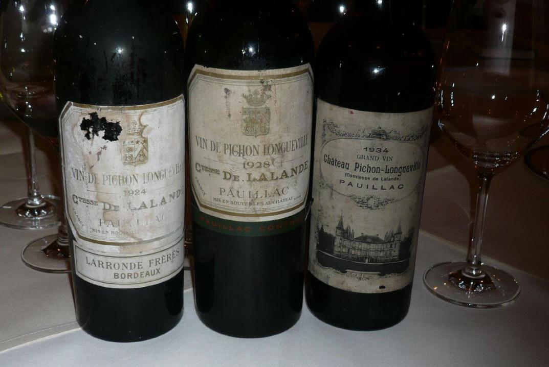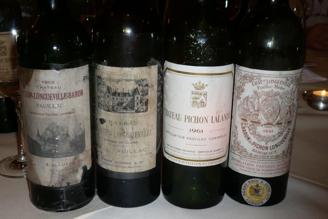 Von Zwillingen spricht man heute oft bei den beiden, nur von einer Straße getrennten Weingütern, deren offizielle Namen Chateau Pichon Comtesse de Lalande und Chateau Pichon Baron de Longueville lauten. Obwohl sie vor fast zwei Jahrhunderten mal zusammengehörten, unterscheiden sie sich deutlich in Stil und Charakteristik. Die Comtesse ist in der Regel der weichere, subtilere, femininere Wein. Der Baron ist insbesondere in der Jugend markanter, robuster, männlicher. Diese Unterschiede verwischen sich natürlich etwas, wenn die Weine altern. Elke Drescher hatte über eine Reihe von Jahren die Weine für diese spannende Vertikale gesammelt, wozu auch viele der früher üblichen Händlerabfüllungen gehörten. Jede dieser Flaschen erzählte in der Probe ihre eigene Geschichte, und meine Bewertung dieser Weine bezieht sich eben auf genau diese Flasche. Generalisierende Aussagen wie "die 28er Comtesse ist ein xx/100 Wein" sind eigentlich fahrlässig. Große Unterschiede gibt es häufig nicht nur unter den unterschiedlichen Händlerabfüllungen. Unterschiede gibt es auch bei den Chateauabfüllungen. Nicht nur, weil fassweise abgefüllt wurde, sondern auch, weil sich manchmal die Abfüllung über einen längeren Zeitraum erstreckte, und damit die Weine wie bei den verschiedenen Händlerabfüllungen unterschiedlich lange im Fass lagen. Nimmt man dazu noch Herkunft und Lagerung der jeweiligen Flasche, so ergibt sich bei aller Jahrgangs-Typizität eine gewaltige Breite dessen, was man da ins Glas bekommen kann. Enttäuschungen sind ebenso vorprogrammiert wie Überraschungen.