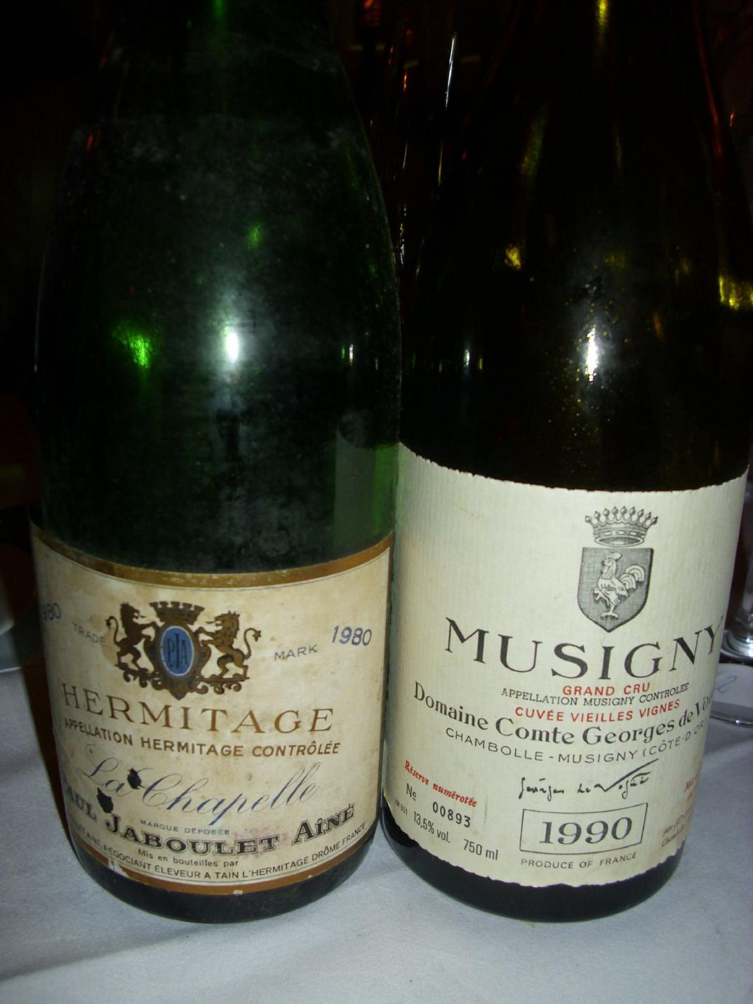 Sehr gute Erfahrungen habe ich bisher mit den 47er Burgundern gemacht, die erstaunlich langlebig sind und von denen die besten sicher ihre Gegenstücke aus Bordeaux überleben dürften. Weich, reif, schmelzig der 1947 Vosne Romanée von L. Pedrier-Saint-Jean, ein großartiger Schmuse-Burgunder, reine Seide am Gaumen, so fein und elegant 97/100. Auf gleichem Niveau der 1947 Gevrey Chambertin Clos Saint-Jacques von de Moucheron & Cie, auch der reif, süß und füllig wirkend, aber mit perfekter Säurestruktur, die ein langes Leben garantiert, sehr druckvoll und lang am Gaumen 97/100.