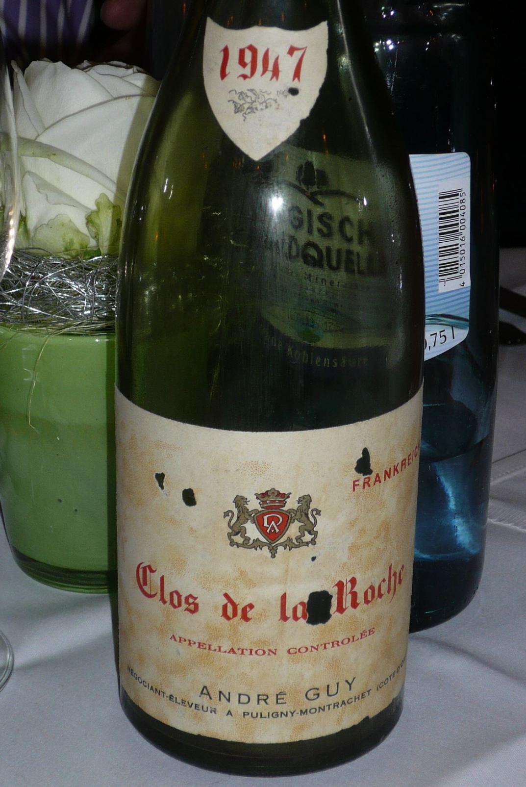 Und selbst dieser Corton ließ sich noch toppen. Oliver Speh, der auch an diesem Abend alle weine perfekt ins Glas brachte, hatte beim Dekantieren den 1947 Clos de la Roche von André Guy gleich als Legendenkandidaten ausgesondert und brachte ihn jetzt als Solitär. Das war jetzt einer dieser raren Weine, die einfach nur sprachlos machen und beim Degustator höchste Glücksgefühle auslösen. Mit Worten kann man so einem Weindenkmal kaum gerecht werden. Klar hatte der prächtige Frucht, reife Waldhimbeeren, unglaublichen, aromatischen Druck am Gaumen, präzise Struktur, Jugend, Kraft, ewige Länge, herrliche Süße, war sehr facettenreich, aber vor allem hatte dieses Elixier einen großen Fehler. Statt einer, auf 11 gierige Kehlen aufgeteilte 1tel würde ich den gerne mal zu zweit aus der Magnum trinken. Ohne Frage, das waren klare 100/100.