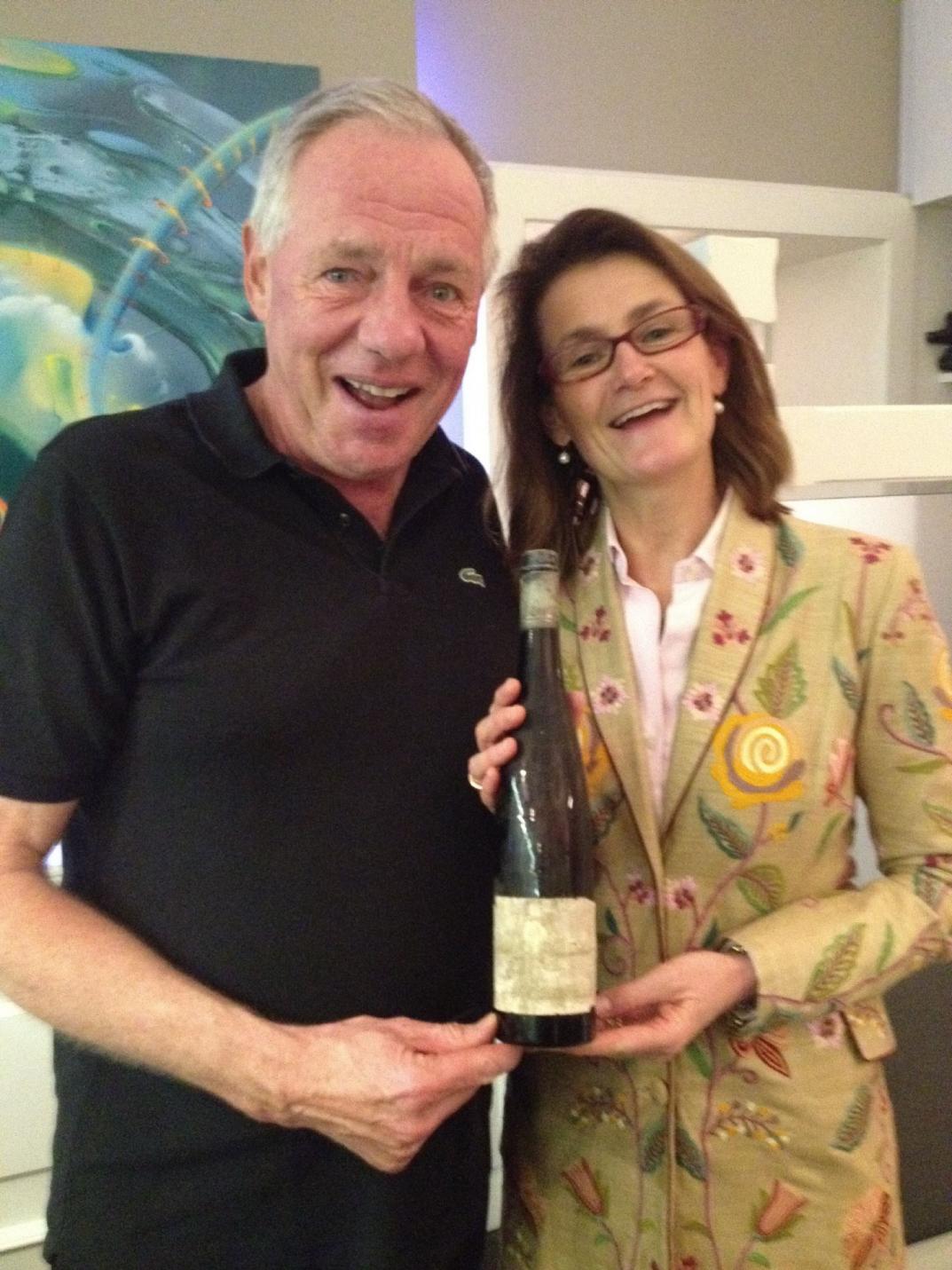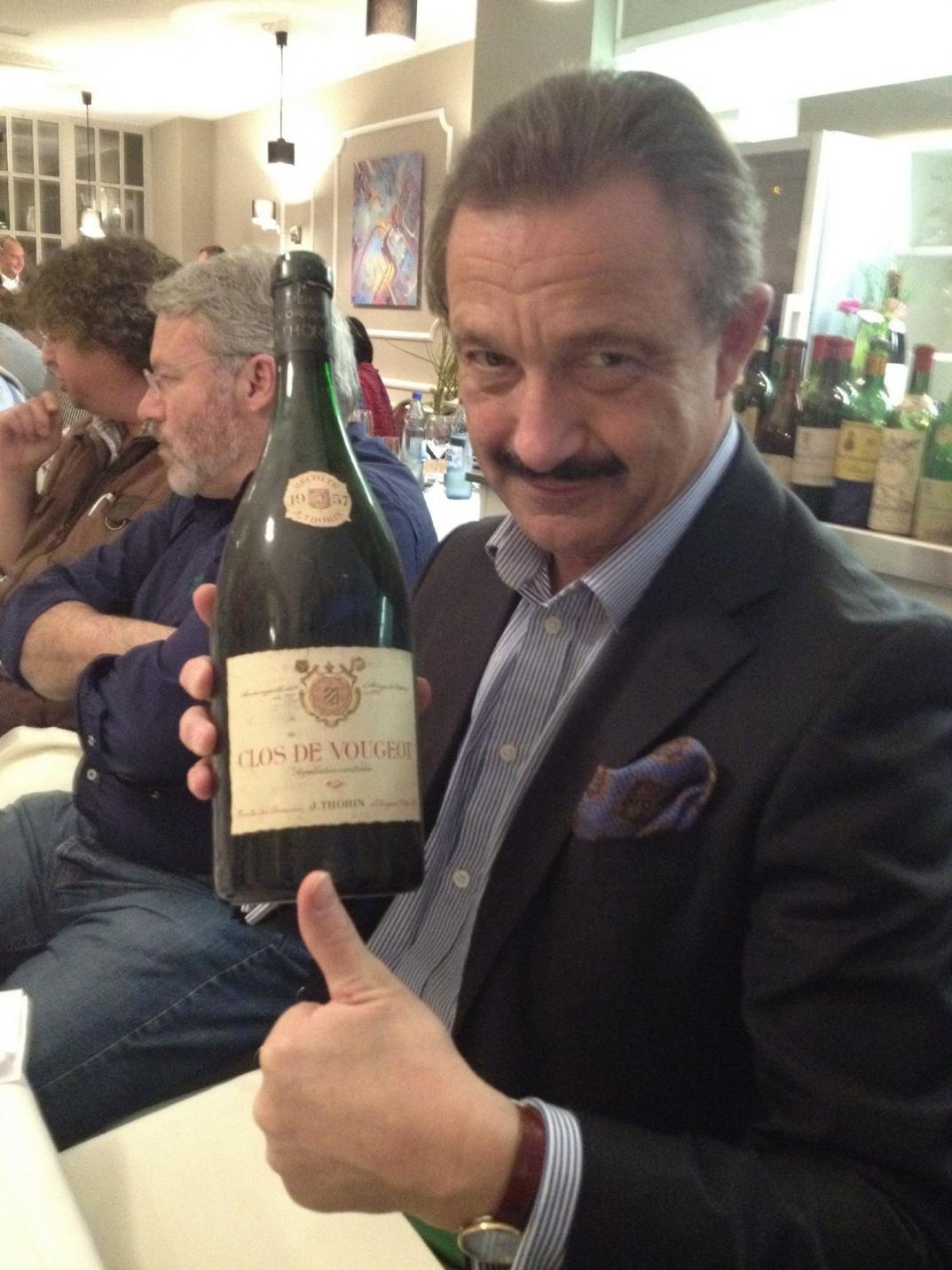 Aus seinem Geburtsjahr gäbe es nichts vernünftiges, hatte mir Stephan Graf Neipperg noch versichert, als er genüsslich am ersten Rotwein schnüffelte. Das stimmt im Prinzip, aber wenn früher eine Region die Ausnahme von der Regel schaffte, dann war das Burgund. Nicht nur äußerlich perfekt war der Zustand dieser Magnum 1957 Clos Vougeot von Thorin. Immer noch dicht die Farbe, sehr lebendig der Auftritt mit feiner, fruchtiger, süßer Nase, Schmelz ohne Ende, erstaunliche Struktur und gute Säure, auch am Gaumen Süße und Schmelz ohne Ende, ein großer kompletter Burgunder, der noch ähnlich fit war wie der gute Stephan 96/100.