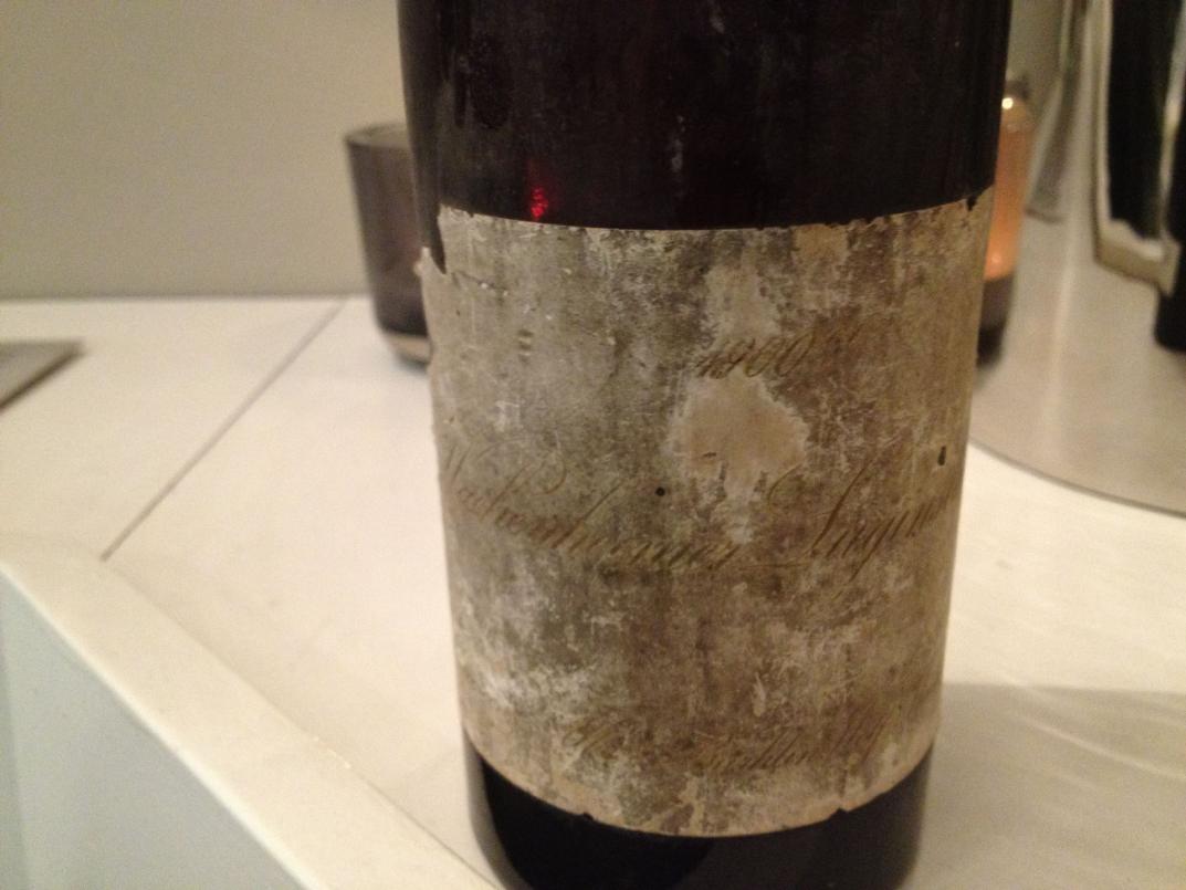 Der 1870 Cantenac Brown hatte zwar Korkbrand und sehenswertes, altes, braunes Glas, aber kein Etikett, an dem man sich ergötzen konnte. Sehr hell war die Farbe, in der Nase überlagerter Yoghurt, am Gaumen Bitternote, aber erstaunlicherweise auch viel Erdbeere. Er trank sich weitgehend spaßfrei, aber auch schmerzfrei, was nicht bei sehr vielen derart alten Weinen gegeben ist 80/100. Das erlebten wir bei einem 1934 Côte Rotie von Peyret Frères. Der war in der Nase noch ganz ok, am Gaumen aber ziemlich grausam mit überviel Säure. Da hätten sich beim trinken Schmerzen eingestellt. Schade, dass auch der 1959 Gazin fehlerhaft war. Nur die dichte Farbe war ok, der Rest erinnerte an durch den Konzentrator gejagtes Balsamico, einfach nur grausam. Danach wirkte ein 1945 Palmer in einer Mähler-Besse Abfüllung geradezu wie Erholung. Der war elegant, aber auch kompakt und schlank mit hoher Säure und pikanter Frucht, aber ich habe von diesem, vor 5 Jahren für viel Geld bei Koppe ersteigerten Wein deutlich mehr erwartet 92/100.