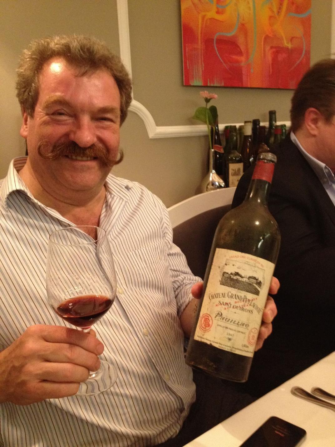 Da war dann die nächste Magnum schon ein ganz anderes Kaliber. Mein Freund Jörg Müller war vor wenigen Tagen 65 geworden. Und da er unsere Runde bereicherte, öffnete ich ihm zu Ehren eine 1947 Grand Puy Lacoste Magnum. Einfach sexy war die Nase dieses Weines mit seidiger Eleganz und mit guter, pflaumiger Frucht, am Gaumen immer noch kraftvoll mit deutlicher Säure, aber auch mit schöner Süße 94/100.