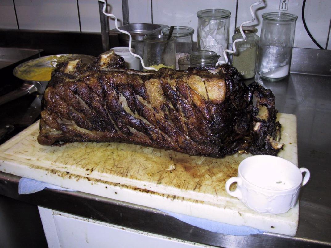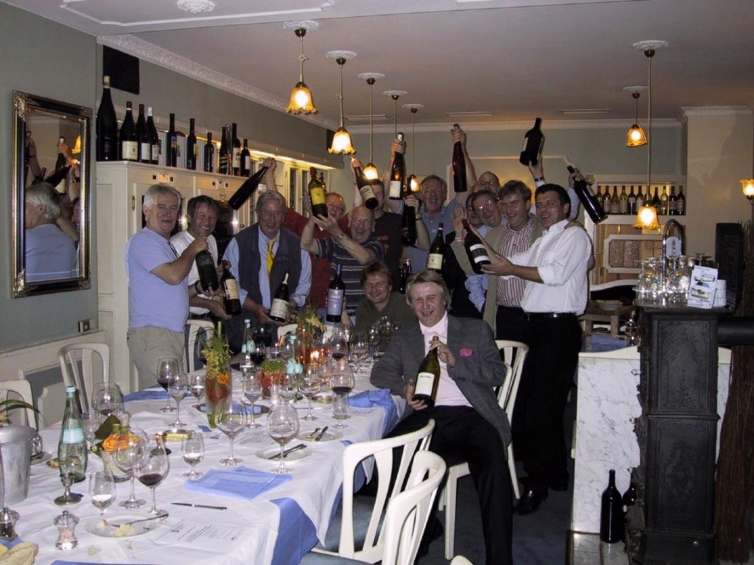 Es sollte noch schlimmer kommen. Der viel zu früh gestorbene Monte Vertine Eigner Sergio Manetti hatte als ausgesprochener Gegner der mit internationalen Rebsorten wie Cabernet und Merlot produzierten Supertoskaner unter dem Namen Pergole Torte seine eigene Version aus 100% Sangiovese produziert. Unsere 1988 Pergole Torte Doppelmagnum war bereits weit über das Genussstadium hinaus und zeigte viel Maggi und oxidative Töne 82/100. Damit hatte die DM genau 18 Punkte weniger als Schorns legendäre Hohe Rippe, an diesem Abend perfekt zubereitet aus einem 6 Wochen speziell abgehangenen Stück Fleisch.