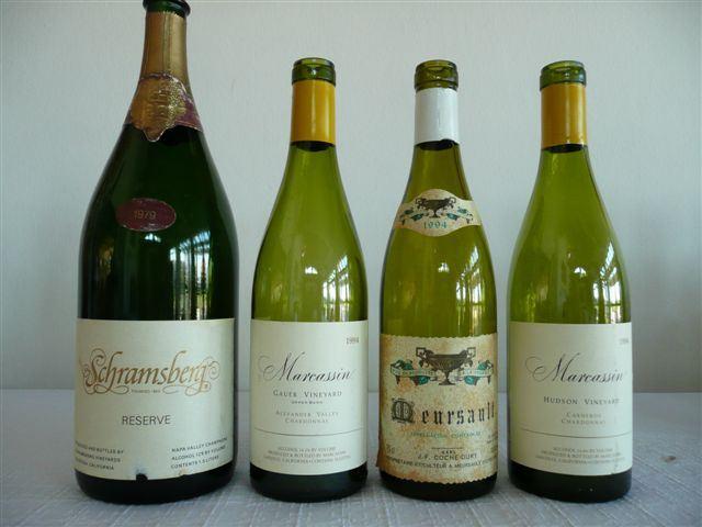 Mit einem Paukenschlag begann dann die eigentliche Probe, allerdings auch mit einem unfairen Vergleich. Zwischen zwei außerweltlichen Marcassins war ein etwas verloren wirkender, einfacher Coche Dury aus einer Dorflage eingeklemmt. Nicht etwa, dass der 1994 Meursault von Coche Dury schlecht gewesen wäre. Aber Coche Dury hat nicht nur bessere Lagen, es gibt auch bessere Jahrgänge. Der hier war schon verdammt reif mit ersten, oxidativen Noten, dabei immer noch recht mineralisch mit erdigen Noten und für sich gesehen auch immer noch nachhaltig, aber er wurde von links und rechts schier erdrückt 89/100. Im linken Glas ein 1994 Marcassin Chardonnay Gauer Ranch Upper Barn. Keine Spur von Alter, perfekter Spagat von Kraft und Nachhaltigkeit auf der einen und Eleganz auf der anderen Seite, sehr mineralisch, komplex und vielschichtig mit immer noch jung und frisch wirkender Frucht. Ein außerweltlich schöner, riesengroßer Chardonnay. Für mich eine hypothetische Mischung aus einem jüngeren Beringer Sbragia und einem DRC Montrachet 97/100. Im rechten Glas ein 1994 Marcassin Chardonnay Hudson Vineyard E Block. Bei sonst nicht unähnlicher Handschrift wirkt dieses Monument etwas ernster, länger, intensiver mit noch stärkerer Burgunder-Affinität. Für mich hier 1/3 Sbragia und 2/3 DRC Montrachet, jeweils aus besten Jahren 98/100. Schier unglaublich, wie sich diese beiden Weine im Glas entwickelten, wie sie ohne Spur von Alter immer neue Facetten zeigten. Da wird einfach jeder Rotwein-Fan zum Chardonnay-Afficionado. Mir war die Gnade dieser ultrararen Edelteile schon einige wenige Male aus jüngeren Jahrgängen vergönnt, aber dieses Erlebnis reiferer Marcassins hier war auch für mich bisher einzigartig.