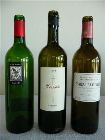 Großes Rätselraten beim ersten Rotweinflight. Was konnte das in den Gläsern bloß sein? Da musste mindestens ein Pirat mit dabei sein. Sehr schöner, gefälliger, eleganter und minziger Cabernet aus zu jungen Reben mit zuwenig Konzentration notierte ich mir beim ersten Wein und vergab großzügige 91/100. Etikettentrinker werden jetzt empört aufschreien, war da doch ein 1999 Screaming Eagle im Glas, der ultimative, unbezahlbare kalifornische Kult-Cabernet. Aber an diesem Abend war der Adler höchstens eine Taube, bei Aldi für 9,99 als "Cooing Pigeon"(gurrende Taube) sicher der Hit, als Screaming Eagle aber eine Frechheit. Groß dagegen 1999 Messorio von Le Macchiole. Eigentlich mit seinen fast 15% ein Alkoholmonster, aber der kam so elegant, fast leichtfüßig daher. Reife Schwarzkirschen, Minze ohne Ende, von der Art her eher Cabernet als Merlot, sehr präzise strukturiert, einfach puristisch schön mit toller Länge am Gaumen 96/100. Nasser Hund die erste Wahrnehmung beim nächsten Wein, nicht perfekt ausgereifter Merlot mit dezenten, grünen Tönen, sehr konzentriert und dabei schon fast Syrah-affin mit schwarzen Oliven und schwarzem Pfeffer, aber auch Kirschfrucht. Zweifellos war 1999 La Clusière ein guter Wein, aber er wirkte auf mich etwas gemacht 92/100.