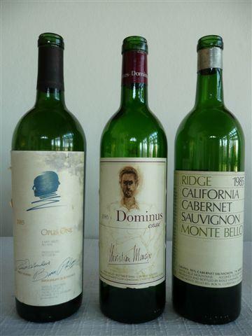 Der nächste Flight hatte dann doch eher etwas von einer Arbeitsprobe. Am besten gefiel noch 1985 Opus One. Der hatte eine klassische Bordeaux-Nase mit etwas Brettanomyces und war am Gaumen reif, weich, elegant mit feiner Süße 90/100. Gehört sicher in den nächsten Jahren getrunken. Fehlerhaft muss 1985 Dominus gewesen sein, zumindest ein schleichender Kork war da sicher im Spiel. Der wirkte wie ein Gerippe, von dem die Aasgeier schon alles abgefressen haben. Nur noch bittere, trockene Tannine, Frucht Fehlanzeige 84/100. Kenne ich deutlich besser. Noch weniger konnte ich mich mit 1985 Ridge Monte Bello anfreunden. Ein anstrengender, sehr medizinal wirkender Wein mit viel Jod und Penicillin. Dazu kam immer stärker dieser kork-ähnliche Ton, der auch bei 85 Heitz so nervt und bei vielen Figeacs 81/100.