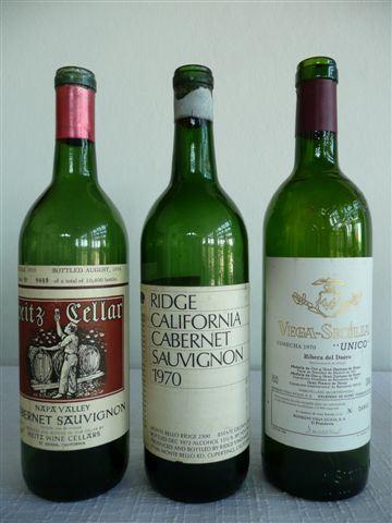 Die besten Zeiten schien der 1968 Mondavi Cabernet Sauvignon Unfined schon länger hinter sich zu haben. Nicht uncharmant, aber doch recht medizinal, am Gaumen schon etwas gezehrt, kurz und eher leichtgewichtig 85/100. Wird sich auf diesem Niveau sicher noch eine Weile halten. Eine Klasse besser 1962 Inglenook. Ein minziger, kräftiger, immer noch erstaunlich kompletter und sehr langer Wein 96/100. Alte Inglenooks sind unsterbliche Monumente vergangener, kalifornischer Weinbaukunst. Sie faszinieren mit ihrer Komplexität und aromatischen Dichte, die auf das "Glutamat" der modernen Winzer, den hohen Alkoholgehalt als Geschmacksverstärker, nicht angewiesen sind. Erstaunlich gut auch 1967 Heitz Martha s Vineyard, den ich so jung und kräftig noch nie getrunken habe. Wirkte in dieser minzigen Ausnahmeflasche zwar weiter als 70 und deutlich feiner mit weniger Kraft, hielt sich aber sehr gut und war irre lang am Gaumen 96/100.