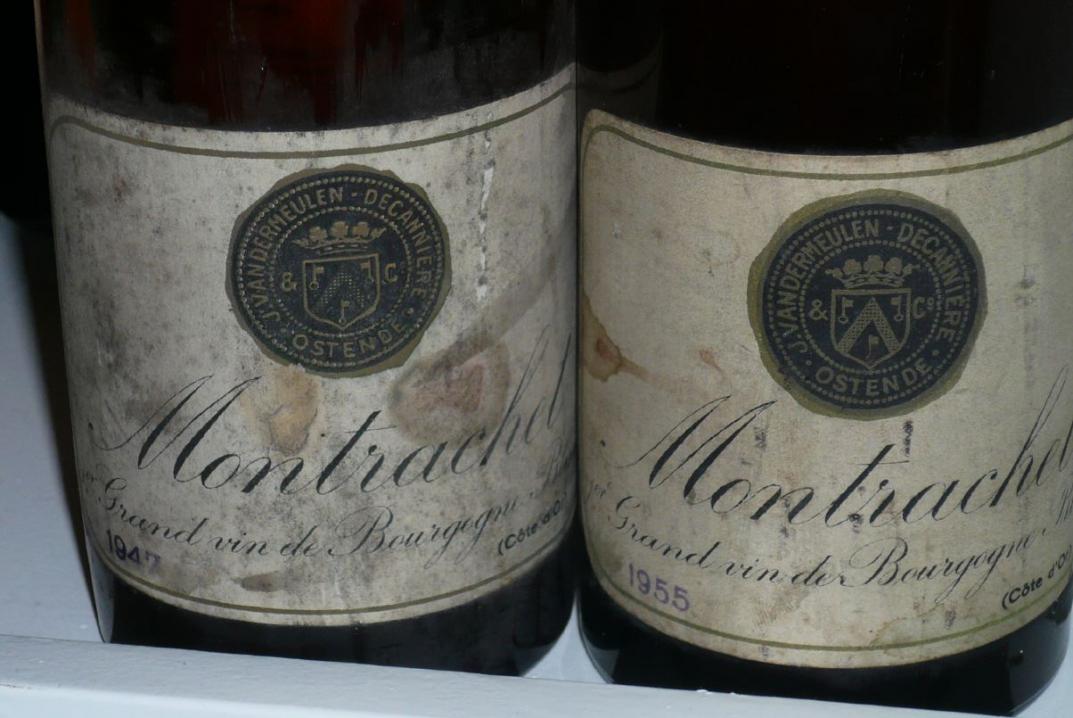 Und schon waren wir in einer anderen Zeit. Zwei große Weiße Burgunder standen vor uns, 1947 Le Montrachet Vandermeulen und 1955 Le Montrachet Vandermeulen. Beides Monumente und doch so unterschiedlich. Da entschied letztlich der individuelle Geschmack darüber, was hier der bessere Wein war. Gülden, cremig, weich und reif mit viel Schmelz und feiner Süße, aber auch guter, tragender Säure der 47er, ein "trockenes Karamellbonbon" formulierte es zutreffend einer aus der Runde, sehr lang am Gaumen und sicher noch mit genug Standvermögen für etliche Jahre 95/100. Deutlich heller in der Farbe und jünger in der Anmutung der 55er, knackige Säure, immer noch viel Frische zeigend, sehr mineralisch, komplex und druckvoll. Und was macht ein großer Wein mit einem leichten Korkton, wie er sich hier eingeschlichen hatte? Bügelt ihn einfach platt, so wie das dieser Wein mit seiner irren Mineralität tat. Entwickelte sich unglaublich im Glas und baute immer mehr aus, konservative 96/100, ohne den leichten Fehlton sicher mehr.
