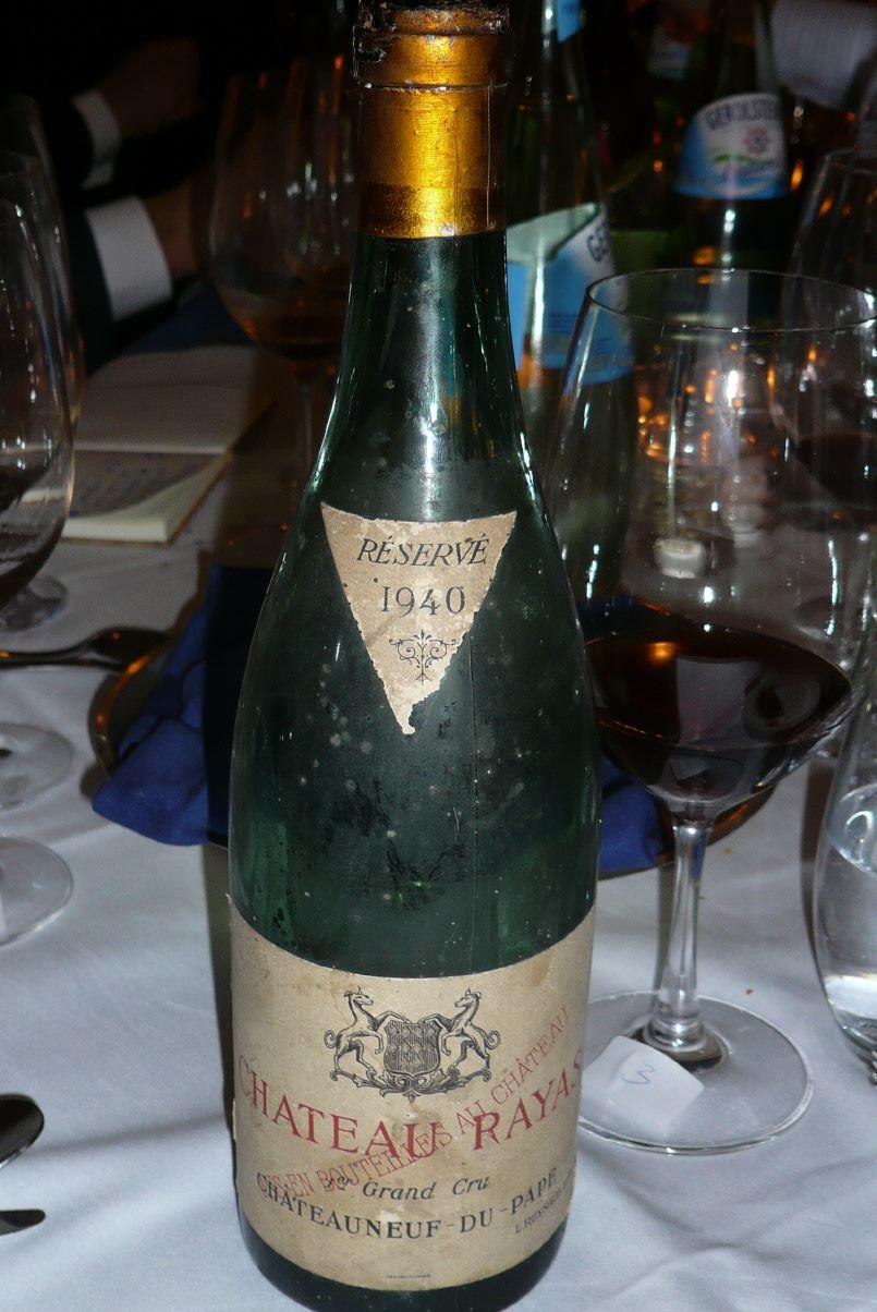 Staunen war angesagt beim nächsten, natürlich wie alle Weine wieder blind servierten Wein. Dunkles Braun, sehr portig mit hoher Süße, aber auch mit viel Süßholz, Lakritz und einem gehörigen Schuss Madeira. Das war 1940 Chateauneuf-du-Pape von Rayas, aber der ultrarare mit der Goldenen Kapsel, der süße Weißwein, quasi die TBA von Rayas und ganz großes Kino 96/100.