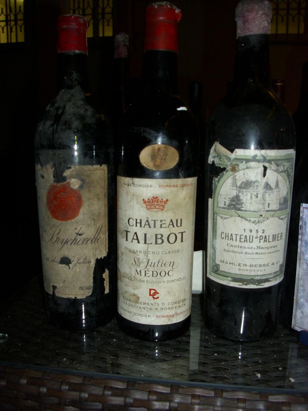 Enttäuschend und ziemlich schwach ein 1928 Beychevelle Vandermeulen aus einer ms" Flasche 84/100. Aus der Chateauabfüllung kenne ich das nur als großen Wein. Der schon ziemlich reife 1947 Talbot mit us" in einer Cordier-Abfüllung hatte die Gemüsenase eines alten Rioja, am Gaumen schlank, feine Aromatik, malzige Süße, auch im Abgang süß 89/100. Der 1952 Palmer in einer Mähler-Besse Abfüllung hatte nicht nur eine sensationelle, dichte Farbe, sondern auch eine sehr druckvolle Aromatik, wäre ohne den leichten Kork sicher ein 94/100 Riese gewesen. (wt 11/2010)