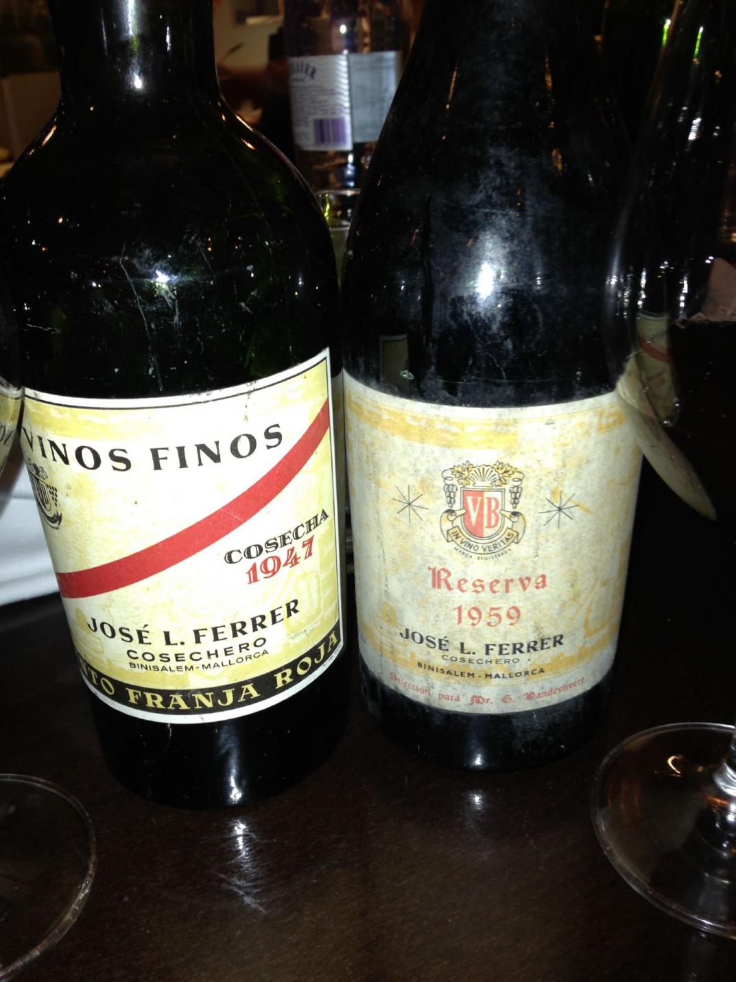 Völlig von den Socken war ich beim nachfolgenden Flight. Nein auf Mallorca wäre ich da blind nie gekommen. Dabei hatte ich den sehr eleganten, finessigen 1947 Ferrer vor einem Jahr schon mal als überraschend schönen Wein im Glas. Nur war er aus dieser hier noch deutlich frischer mit schöner Frucht und guter Säure 95/100. Noch eine ganze Ecke drüber im anderen Glas der 1959 Ferrer Riserva. Was für ein kraftvoller, gewaltiger, hoch aromatischer Wein mit Kaffee, Mokka, Kräutern, dunklem Tabak und auch Röstaromen, enorm dicht und lang, zeitlos schön und mit diesem aromatischen Druck und dieser Fülle nahe an der Perfektion 98/100.
