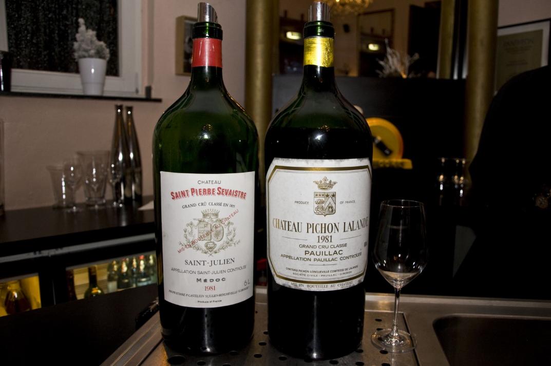 Vor fünfzehn Jahren habe ich schon mal eine 81er St. Pierre-Impi aufgemacht. Damals, auf Sylt an der legendären Buhne 16 mit meinen friesischen Freunden war das ein sehr beeindruckender, noch taufrisch wirkender Wein. Und für den St. Pierre in der Großflasche scheint seitdem die Zeit stehengeblieben zu sein. Der 1981 St. Pierre aus der Imperiale und aus der Jeroboam zeigte keinerlei Alter. Ein sehr eleganter, typischer St. Julien mit guter, immer noch frischer Frucht und viel Zedernholz, erstaunlicherweise aus der Jero noch eine Spur druckvoller und jünger als aus der Impi 93/100. Würde ich gerne noch mal nachkaufen, denn da sind sicher noch 20 Jahre Musik drin. Das gilt auch für 1981 Pichon Comtesse, von Mitte der 80er bis Mitte der Neunziger einer meiner Lieblingsweine, meist mit 95/100 bewertet. Ich erinnere mich noch gut an eine meiner ersten Notizen: " Begeisterung führte zum Kauf einer Kiste 95/100". Und jetzt stand dieser Wein aus der Imperiale so vor mir, als sei die Zeit stehengeblieben. Unfassbar, noch so jung, Comtesse in Reinkultur, herrliche, generöse Frucht, sehr druckvolle Aromatik, diese unnachahmliche Mischung aus Kraft und Eleganz 95/100. Auch hier sind in der Impi noch mal 20 weitere Jahre drin. Mal sehen, ob ich das ausreize, eine zweite Impi hätte ich noch.