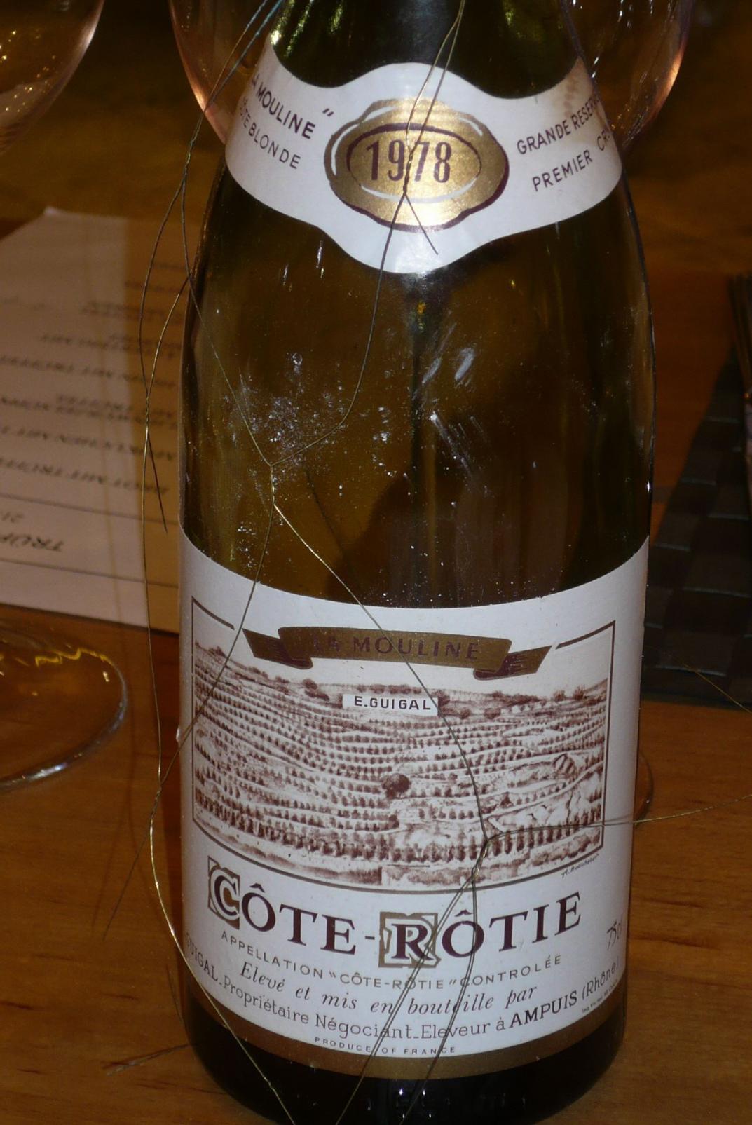 Natürlich gab es dazu aus unseren Kellern die passenden Weine. Den Anfang machte ein 2000 Beaucastel Blanc Vieilles Vignes. Sehr kräuterig, Fenchel, deutliche Bitternote, entwickelt sich im Glas, ist aber schon über den ersten Punkt, in dem weiße Chateauneufs Spaß machen 88/100. Und was kommt raus, wenn man die Nase eines Cheval Blanc mit der schokoladigen Fülle eines großen Pomerols paart? Der elegante, schmeichlerische, enorm eindrucksvolle 1990 Conseillante 97/100. Und selbst dieser große Wein fand noch seinen Meister in einem schlichtweg außerweltlichen 1971 Petrus, der keinerlei Alter zeigte 99/100. Weich, süß, reif war ein 1952 Chateauneuf-du-Pape von Rebourseau-Philippon, mit viel Schmelz und feiner generöser Süße, aber auch kräftiger Säure, die diesen Wein frisch hielt 94/100. Einer der mit Abstand größten Weine meines, an Weinhöhepunkten sicher nicht armen Lebens war vor 11 Jahren im Tan Dinh in Paris ein 1978 La Mouline von Guigal. Seinerzeit hatte ich mir notiert, dass der nicht nach Perigord-Trüffeln riecht, nein, Perigord-Trüffel riechen nach 78 La Mouline. Über 2 Stunden musste ich damals auf den Wirt des Restaurants einreden, bis er uns endlich eine Flasche davon trinken ließ. Und diesen Wein tranken wir jetzt zu unserem Trüffelmenü noch mal. Immer noch sehr jung, sehr dicht mit fast undurchdringlicher Farbe. Wir machten das Experiment und legten ein paar unserer Knollen auf einen Teller. Dann rochen wir abwechselnd am La Mouline und an den Perigord-Trüffeln. Und wer roch, oder besser gesagt duftete intensiver nach Perigord? Der La Mouline, unfassbar! Ein Wein, der sprachlos macht und für den die 100/100 fast eine Beleidigung sind. Parker hat ja reichlich die Maximalnote auf die LaLas diverser Jahre runterregnen Lassen. In den meisten Fällen kann ich das voll nachvollziehen, doch das hier, dieser 78er La Mouline, ist für mich das größte, was Guigal jemals erzeugt hat.