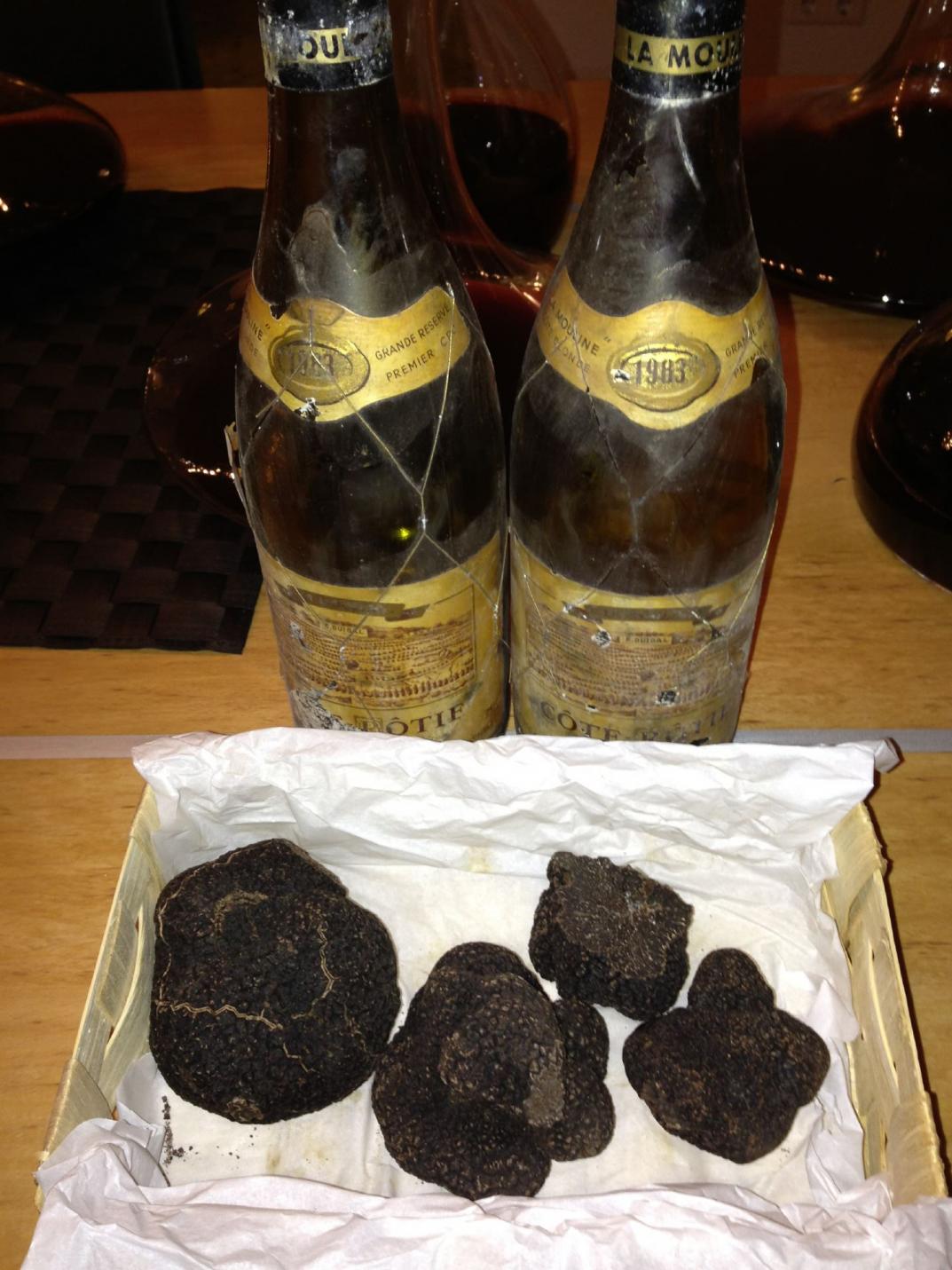 Trüffel sind eine feine Sache. Insbesondere liebe ich die Schwarzen Perigord Trüffel. Während die Weißen aus Alba intensiver duften, sind die Schwarzen vielseitiger verwendbar. Aber egal ob Schwarz oder Weiß, wenn in einem guten Lokal der Ober mit dem weißen Handschuh und der Briefwaage kommt, dann sträuben sich mir die Nackenhaare. Die dann kommende, grammweise Enteignung ist nur schwer zu ertragen. Deshalb erwerben wir einmal im Jahr tagesfrisch eingeflogen eine größere Menge Perigord-Trüffel, die dann der Spitzenkoch in unserer Runde in seiner heimischen Küche in ein großartiges, siebengängiges Trüffelmenü verwandelt. Dazu greifen wir tief in unsere Keller.