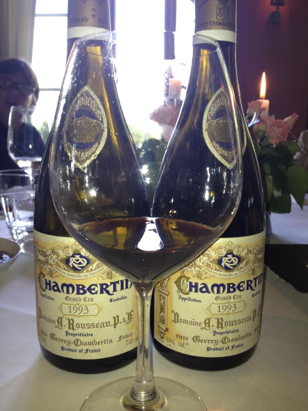 Damit hatte ich nicht gerechnet. Gute Freunde hatten uns ins Landhaus Mönchenwerth eingeladen. Und da sie uns eine besondere Freude machen wollten, hatten sie 1993 Chambertin von Armand Rousseau mitgebracht. What a Treat! Nur die Farbe mit leichten Brauntönen zeigte erste Reife an. Ein großer, nobler, aristokratischer Wein, sehr komplex die Nase mit feinem Spiel roter und dunkler Früchte, mit einem Hauch von Kräutern und Lakritz und einem großen Strauch getrockneter Rosen, am Gaumen die leicht barocke Fülle eines großen Chambertin, aber mit unglaublicher Finesse und Eleganz, und natürlich mit begeisternder Länge. Da machte jeder Schluck Lust auf mehr. Auf dem Weg zum Höhepunkt dürfte dieser Wein sein, wo er aber sicher noch 10+ Jahre bleibt. Und da es ja ein ausgiebiger, längerer Lunch sein sollte, hatten unsere Freunde gleich noch eine zweite Flasche mitgebracht. Auch diese grossartig, vielleicht noch einen Tick frischer und ebenfalls auf mindestens 95/100 Niveau. Und wie konservativ diese 95 waren, zeigte zum Schluss noch ein beeindruckender, wilder, kräftiger 1988 La Mission, der aber nach diesem doppelten Burgundertraum keine Chance hatte. Wieviel an dem Spruch "Die besten Bordeaux kommen aus Burgund" dran ist, haben wir wieder sehr eindrucksvoll erlebt.