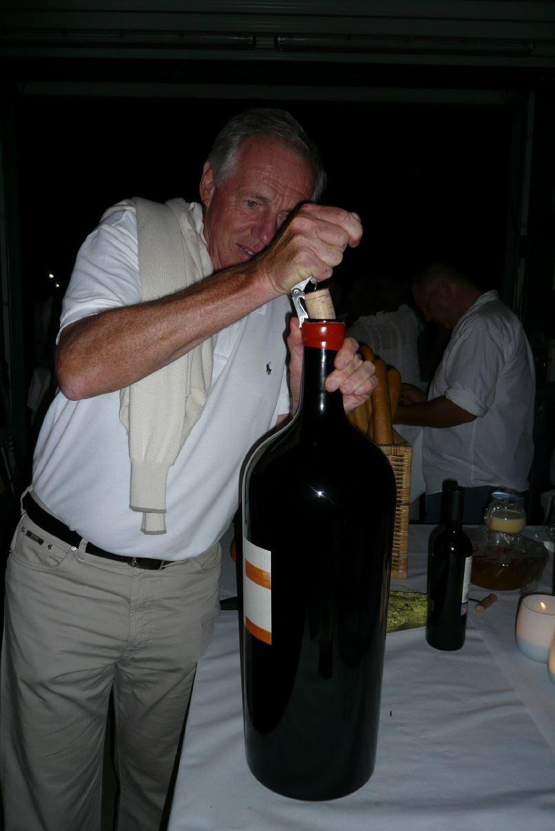 Nach einem weiteren Traumtag war eine White Night angesagt. Sylter Freunde hatten eine große Werkstatt für diesen Abend in eine perfekte Party-Location umgebaut, in der über 100 begeisterte Gäste dieser tollen Fete bis zum frühen Morgen abrockten. Wineterminator durfte mit dabei sein und mit ihm eine 12 Liter Flasche 2003 Montepeloso Eneo. War es der Großflaschen-Bonus, der diesen Wein so speziell machte? 2003 war in der Toskana kein unproblematisches Jahr, in dem viele Weine etwas dick und unförmig mit eher kalifornischer Exotik gerieten. Der kurz vor Mitternacht geöffnete Eneo zeigte auch eine gewisse Form üppiger Exotik, behielt dabei aber klare Konturen. Einfach sexy war er, pralle Lebensfreude auf hohem Niveau mit viel schokoladiger Fruchtigkeit, die da ins Glas floss 93/100. So leerte sich diese grandiose Flasche zügig.