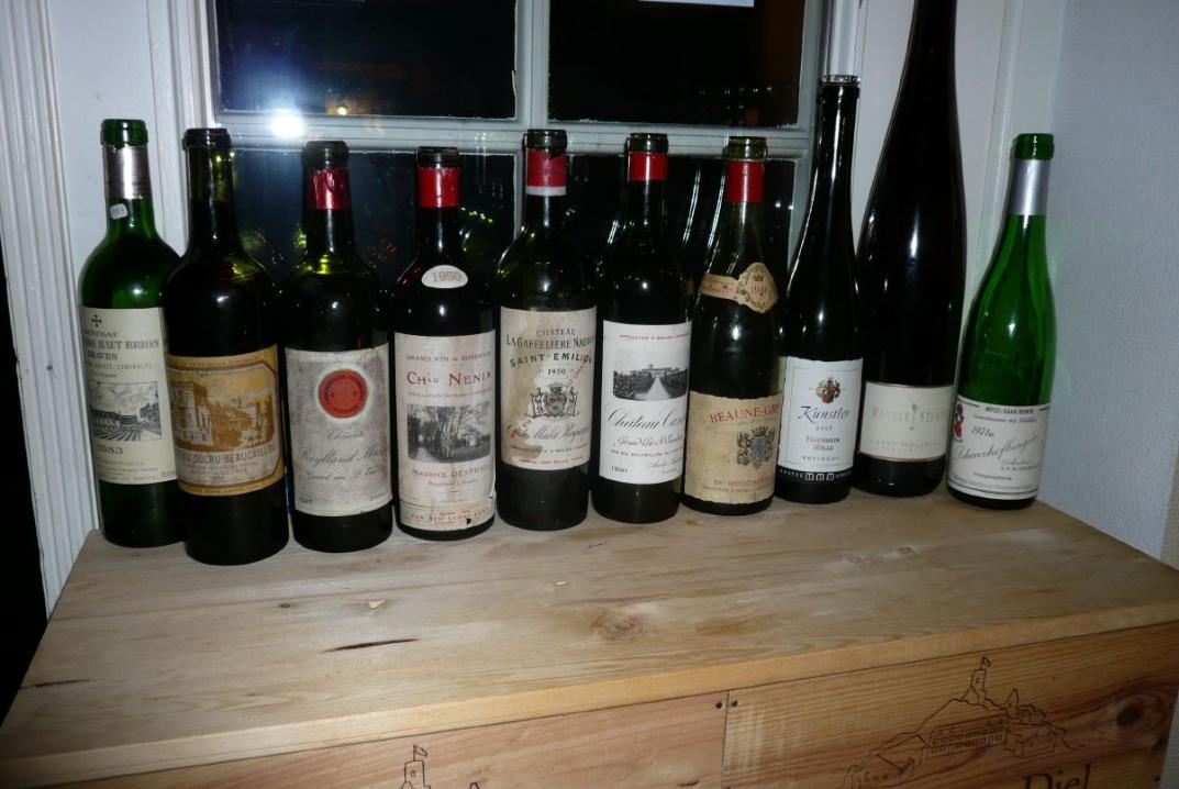 Meine Stamm-Cantina in Kampen ist das zum Dorfkrug gehörende und dahinter liegende Wiin Kööv. Wer sich hier bei Klaus und Nina nicht wohl fühlt, dem ist wohl nicht mehr zu helfen. Neben etlichen, kleineren Besuchen, Aperos und Gute-Nacht-Schlücken haben wir hier zwei größere Proben zelebriert. Die erste war zu Wineterminators Geburtstag. Los ging es mit einer 1971 Scharzhofberger Auslese des Weingutes von Hövel. Kräftiges Goldgelb, in der Nase reifer Apfel und Zitrusfrüchte, am Gaumen eher halbtrocken wirkend und durch die gute, apfelige Säure immer noch recht frisch 90/100. Aus der Magnum tranken wir danach einen 2007 Höllberg GG von Wagner Stempel. Noch sehr jung mit knackiger Säure, salziger Mineralität und hoher Extraktsüße 90/100. Deutlich zu jung auch die 2008 Hochheimer Hölle von Künstler, aber was für ein Geschoß! Strahlende Mineralität, fantastische Struktur und Präzision, jetzt schon enorm druckvoll und lang am Gaumen, wird sicher über die nächsten 10-15 Jahre ausbauen und zulegen 92+/100. Zu jung war der 1950 Beaune Grêves des Comte de Moucheron sicher nicht mehr. Aber durch die gute Säure wirkte er noch um Jahrzehnte frischer und jünger, feine Süße, sehr elegant 90/100. Robust, dicht und kräftig kam der deutlich jünger wirkende 1950 Canon daher. Bei der Superfarbe und der tollen Struktur hebe ich eine Flasche für den nächsten runden Geburtstag in 10 Jahren auf 94/100. Das gilt wohl auch für den schlichtweg perfekten 1950 Gaffelière-Naudes, den man mit seiner druckvollen Aromatik, seiner Eleganz, seiner Länge und seiner herrlichen Süße blind mit einem großen Cheval Blanc verwechseln kann 99/100. Burgundische Anklänge und enorme Fülle zeigte 1950 Nenin, reife Sauerkirsche mit Mousse von der Bitterschokolade, generöse Süße, voll da 96/100. Die jüngste Farbe der reiferen Weine des Abends zeigte der 1947 Roylland Matras Vandermeulen, aber auch die reifste Nase, balsamische Noten, viel Säure, aber auch Spannung und eine schöne Süße 93/100. Ein Prachtexemplar hatten wir auch wider vom 1955 Ducru Beaucaillou erwischt, mit burgundischer Pracht und Fülle, süßer Frucht, Minze, betörender Eleganz und süßem Schmelz 96/100. Schöner Abschluss dieses Abends ein sehr ätherischer, reifer, weicher 1983 La Mission Haut Brion, mit viel Kräutern, Tabak, Teer, Minze und einem Schuss Eukalyptus 94/100.