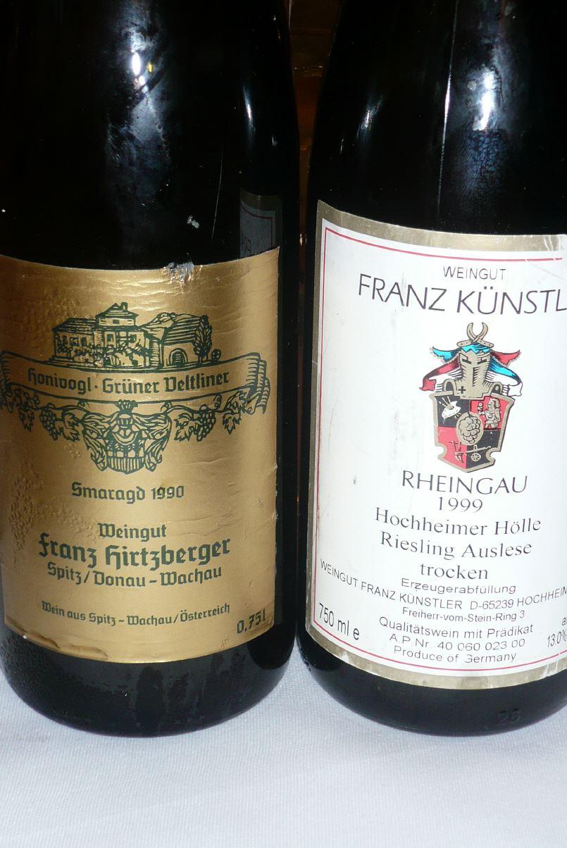 Tolaini probiert, einem neuen Alleinimport von Martin Schachner. Das Gut gehört einem, ursprünglich nach Kanada ausgewanderten und dort sehr erfolgreichen Geschäftsmann, der mit Hilfe von Michele Rolland jetzt auch in der italienischen Weinwelt Zeichen setzen möchte. Von den 2005ern aus einem allerdings auch nicht so inspiererenden Jahrgang war ich im letzten Jahr nicht sehr beeindruckt. Der neue Jahrgang gefällt mir da sch besser. Gut zu trinken war der recht zugängliche, von pikanter Kirschfrucht geprägte 2006 Valdisanti 90/100. Ein gewaltiges Tanninmonster ist der Topwein des Gutes, der 2006 Picconero. Pflaumige Frucht, Kraft, Fülle, sehr konzentriert mit noch bissigen Tanninen, entwickelt sich im Schneckentempo. Nach drei Stunden in der Karaffe hatte er sich zumindest stückweit geöffnet und wirkte etwas leichtfüßiger und eleganter 92+/100. Die Wartezeit verkürzten wir mit einem 2008 Pinot Noir Central Otago von Salomon&Andrews. Ein weicher, fruchtiger, zugänglicher, charmanter Pinot mit reichlich reifer Himbeere 88/100. Der Salomon in diesem Venture ist übrigens Österreichs Biowinzer vom Undhof. Gut gefiel uns aus gleicher Hand auch der 2009 Marlborough Sauvignon Blanc, frisch, fröhlich, fruchtig mit erfrischender Leichtigkeit 88/100. Und dann hatte Martin Schachner noch ein ganz besonderes Tröpfchen parat, eine 1989 Zeltinger Sonnenuhr TBA Goldkapsel von Molitor. Ein wunderbarer Aprikosen-Likör mit feiner Kräuterwürze und nicht aufdringlicher Süße, erstaunlich zahmer Säure und viel Kraft, unglaublich dicht lang, ähnelte nicht nur im für die Mosel erstaunlich hohen Alkohol (12%) einem großen Sauternes 96/100.