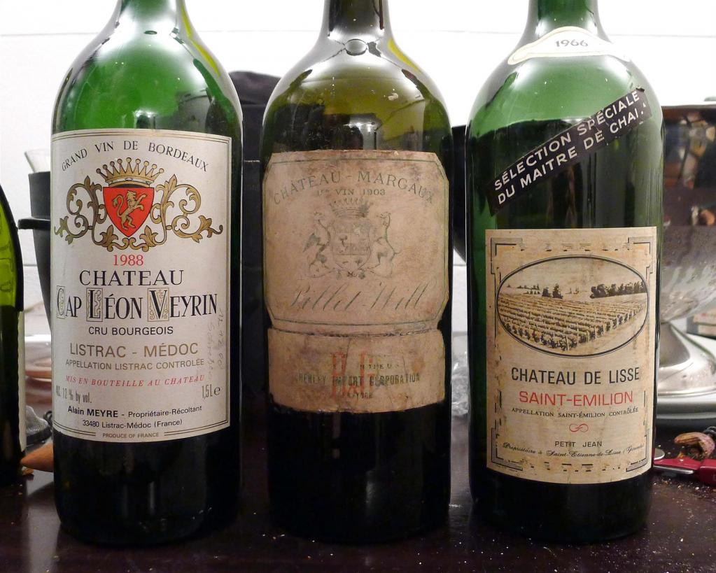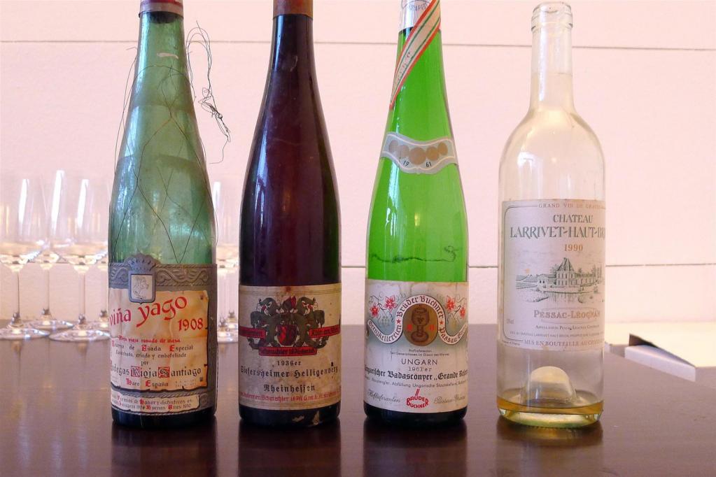 Auf die vier Weißweine, mit denen diese Probe begann, hätte eher der Spruch „Nicht schön, aber selten“ gepasst“. Bittere Kost war mit tiefer, aber klarer Farbe der 1908 Vina Yago der Bodegas Rioja Santiago. Am Gaumen zeigte dieser Wein Bittermandel-Aromen und immer noch Kraft und Länge – WT85. Das Erstaunlichste an diesem Wein war, das so ein über 100 Jahre alter „Vino viejo rosado di mesa“ überhaupt noch trinkbar war. Eine weitere, vielleicht deutlich besser gelagerte Flasche dieses Weines hatte 2008 ein meiner Raritätenproben als gut gereifter Chardonnay mit WT91 für Aufsehen gesorgt. Eher ein Alptraum der 1936 Siefersheimer Heiligenberg Riesling von den Weinkellereien Schmutzler, der an abgelaufene Putzmittel erinnerte. Fürchterlich, da war selbst Clorex aromatisch gegen. Und was immer in der Flasche 1961 Ungarischer Badasconyer Grand Reserve von den Grenzkellereien Brüder Buchner war, es hätte drin bleiben sollen. In meinem Glas hatte das nichts zu suchen. Deutlich besser hätte auch ein 1990 Larrivet-Haut-Brion sein müssen, der sich ziemlich ausdruckslos und nichtssagend präsentierte – WT82.
