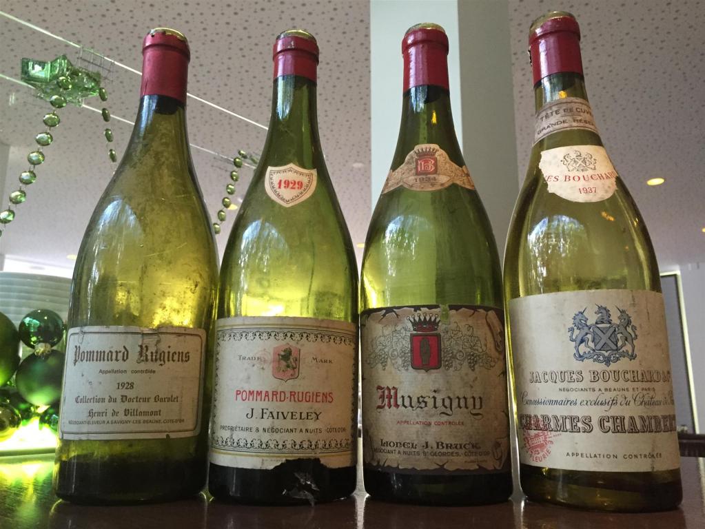Beim 1934 Musigny von Lionel J. Bruck irritierte zu Anfang eine sehr gewöhnungsbedürftige Fahrradschlauch Nase. Am Gaumen war der Musigny deutlich besser. Auch die Nase entwickelte sich stückweit, während am Gaumen richtig die Post abging. Der Musigny wurde immer süßer, druckvoller und fülliger – WT95. Der hätte einfach eine bessere Nase (und dann auch eine höhere Bewertung) verdient gehabt. Mit der Perfektion flirtete der 1937 Charmes Chambertin von Jacques Bouchard aus diesem legendären Burgunderjahr. So seidig, so stimmig mit betörender, tänzerischer Leichtigkeit, dabei gleichzeitig so unglaublich druckvoll und lang. Ein immer noch so vitaler, zeitloser Weinriese aus einem Guss – WT99.