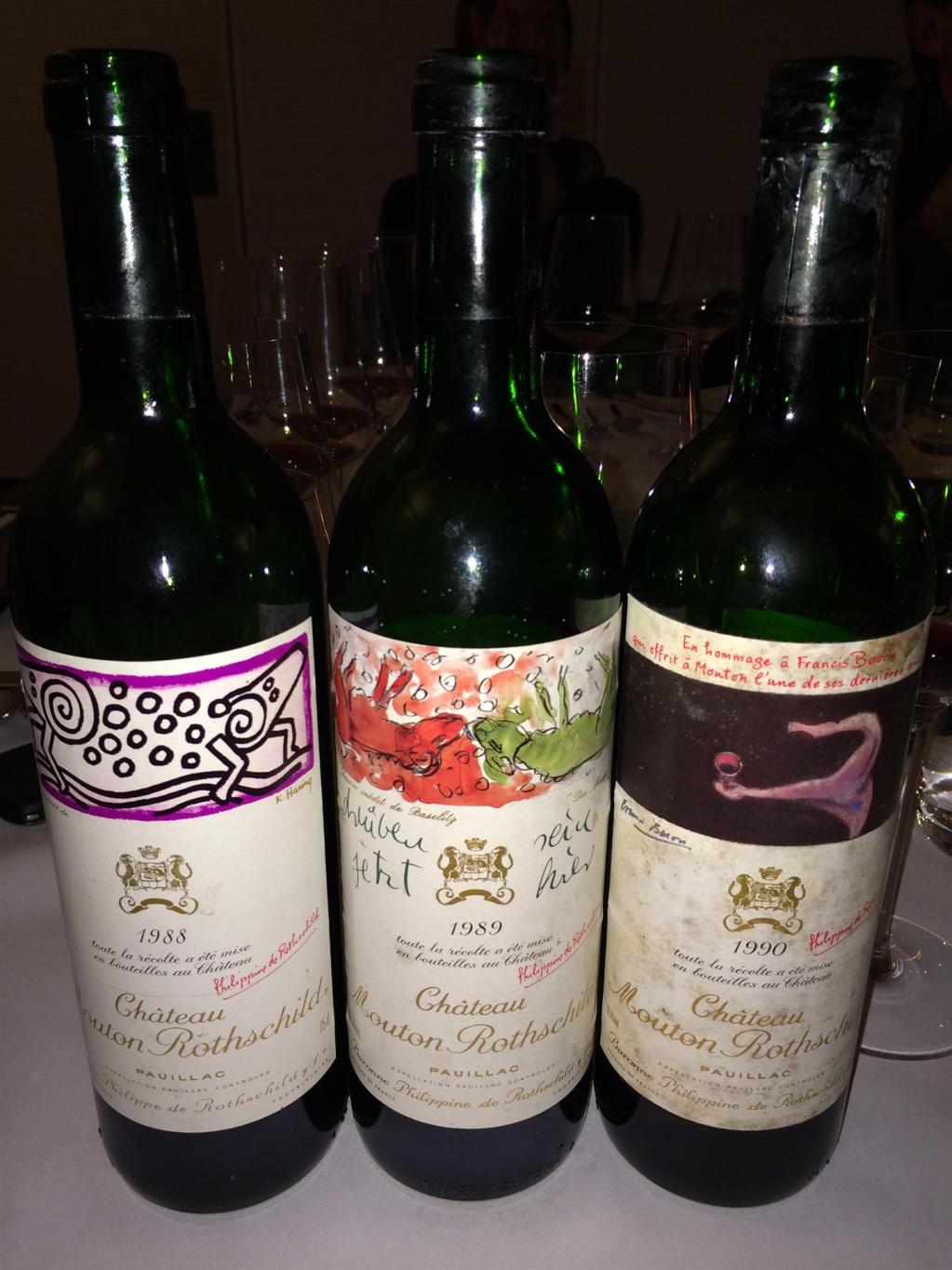 Und schon waren wir bei den Roten, und wie! Mit einem Knallerflight aus drei prächtigen Moutons schickte uns der liebe Rainer gleich ins Reich der Träume. Eigentlich galten diese drei Weine nie als groß. Der 88er war immer der zugenagelte, 89 und 90 die frühreifen, für Mouton enttäuschenden, schlanken Blender. Wie man sich täuschen kann, und wie sich die Zeiten ändern. 1988 Mouton Rothschild startete mit einer geilen Nase, Cappucino mit viel Kakaopulver und drei Stücken Zucker. Am Gaumen erst verhalten mit puristischer Frucht und immer noch massiven Tanninen. Man spürt das enorme Potential dieses Weines, der mal auf Augenhöhe neben dem 86er stehen wird – WT96+. Wer den 88er heute wirklich genießen möchte, sollte ihn 5 Stunden vorher dekantieren. 1989 Mouton Rothschild hatte zu Anfang eine schwierige Nase, Erst alter Pappkarton, dann immer speckiger, doch das gab sich mit genügend Zeit und Luft. Dann wurde die Nase röstiger mit feiner Minze und Cassis pur. Auch am Gaumen Cassis pur – WT94. Leicht irritierend zu Anfang auch die animalisch-junge Nase des 1990 Mouton Rothschild, die mit Luft deutlich gefälliger wurde. Auch der baute im Glas enorm aus und wurde immer röstiger mit generöser Süße – WT95. Alle drei Moutons veränderten sich fast minütlich im Glas, legten immer mehr zu und wurden dabei immer offener und hedonistischer. Da waren die Gläser viel zu schnell leer, um mehr als eine Momentaufnahme zu beschreiben. Alle drei sind nach wie vor eine Suche wert.